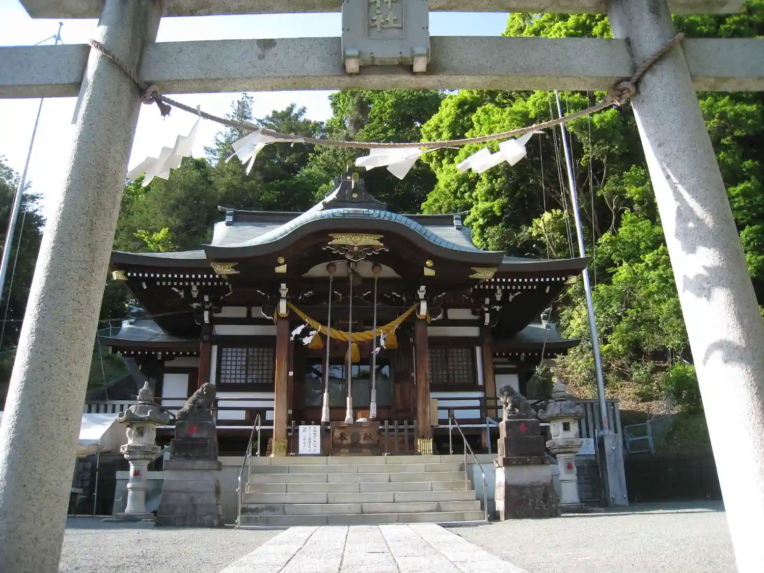 正面の鳥居。御神木は写真のさらに左側にあります。