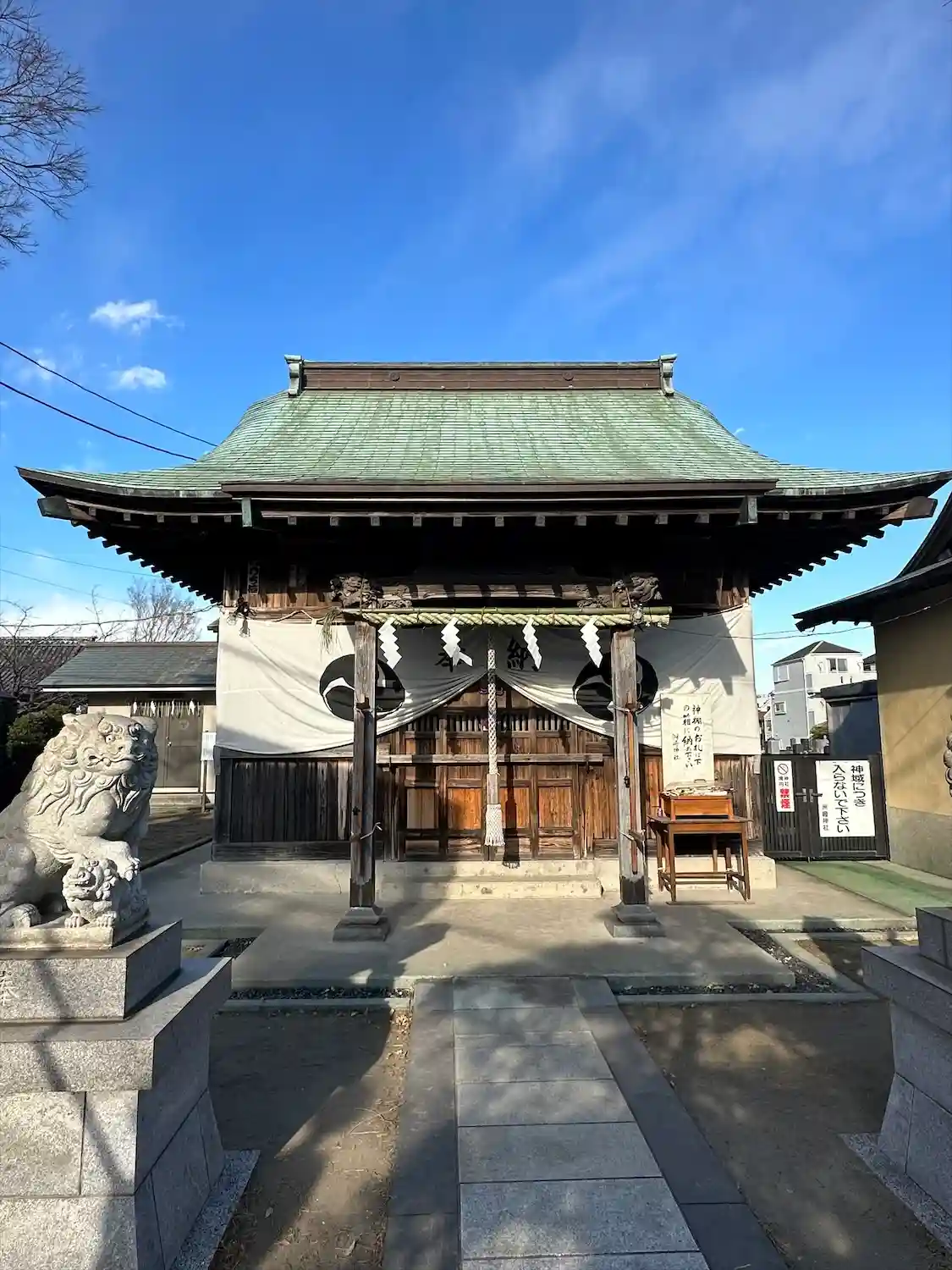 拝殿前の狛犬さん。
