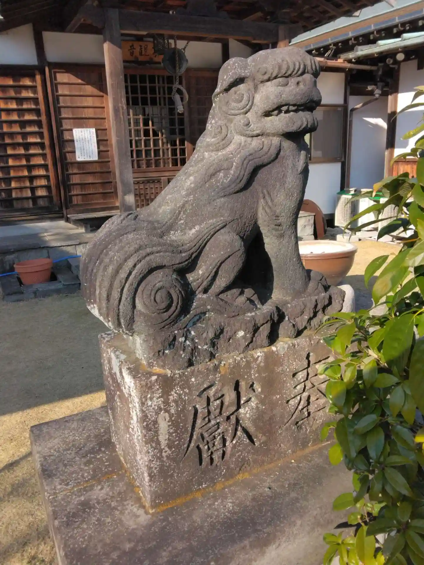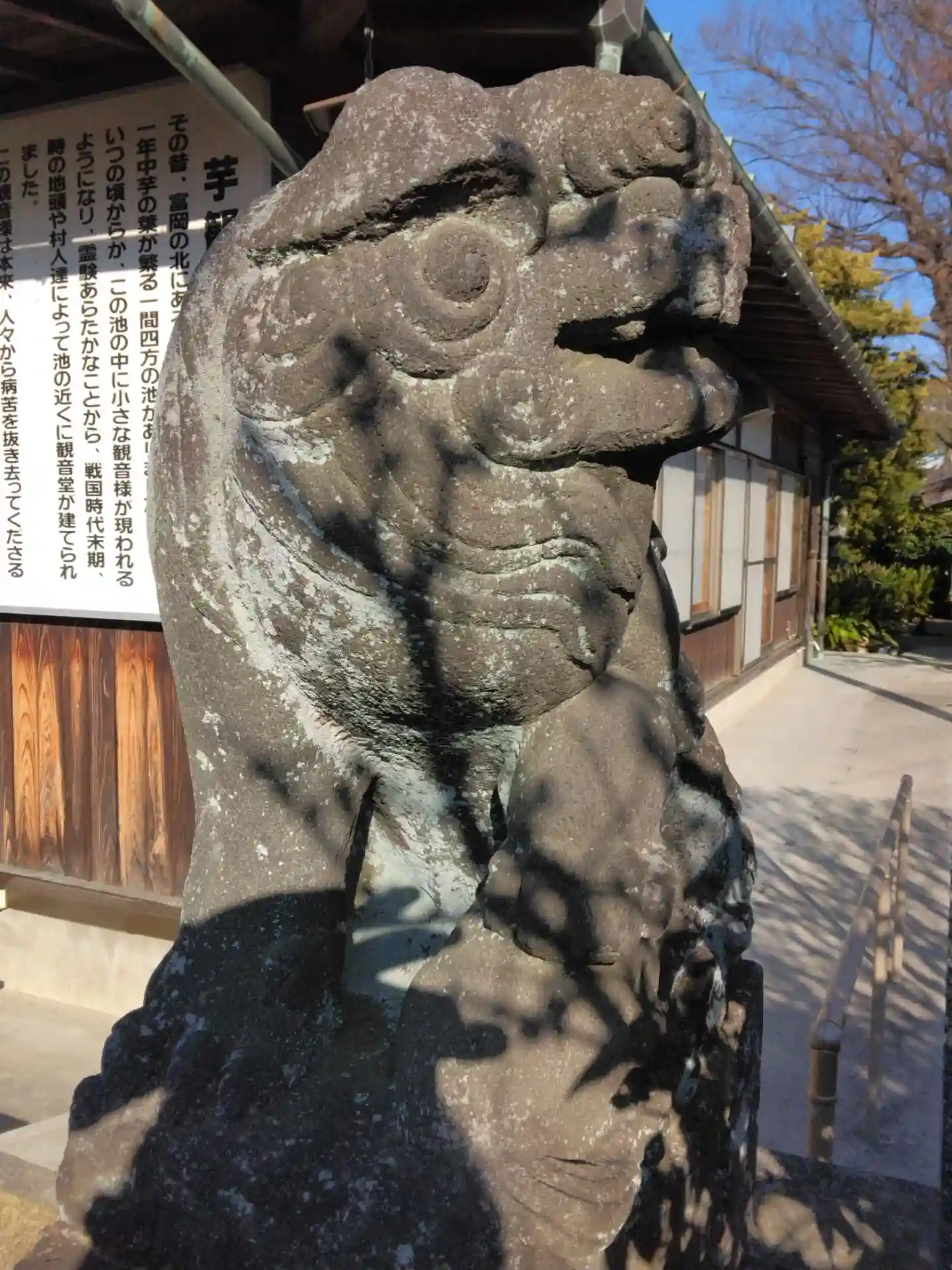 芋観音を祀る観音堂前に狛犬さんがいらっしゃいました。