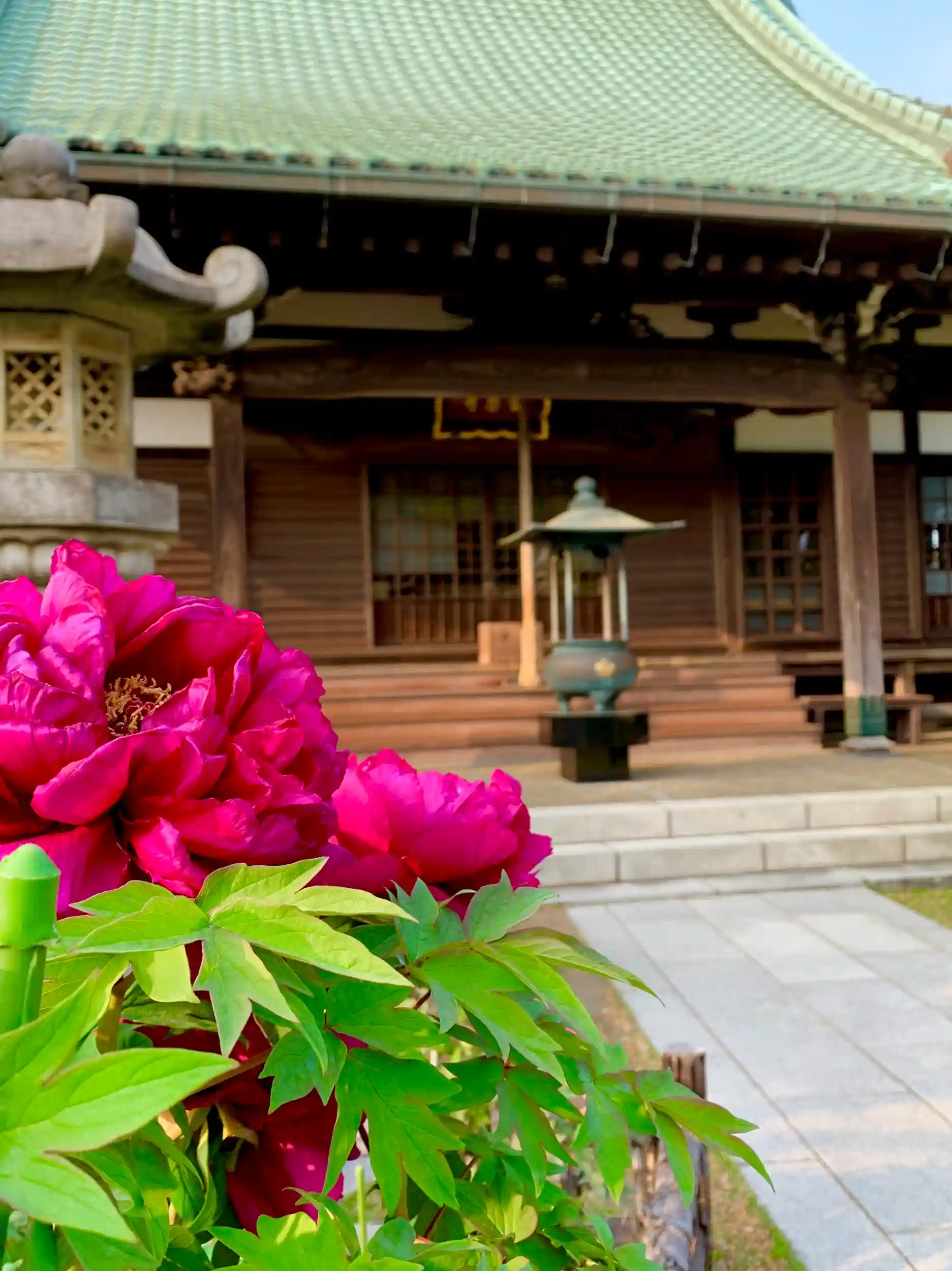 牡丹がとても綺麗に咲いているというので訪れてみた。牡丹も綺麗だったが、八重咲きの桜も藤の花も咲いていて夢見心地。とても有難い気持ちになり、再度手を合わせました。