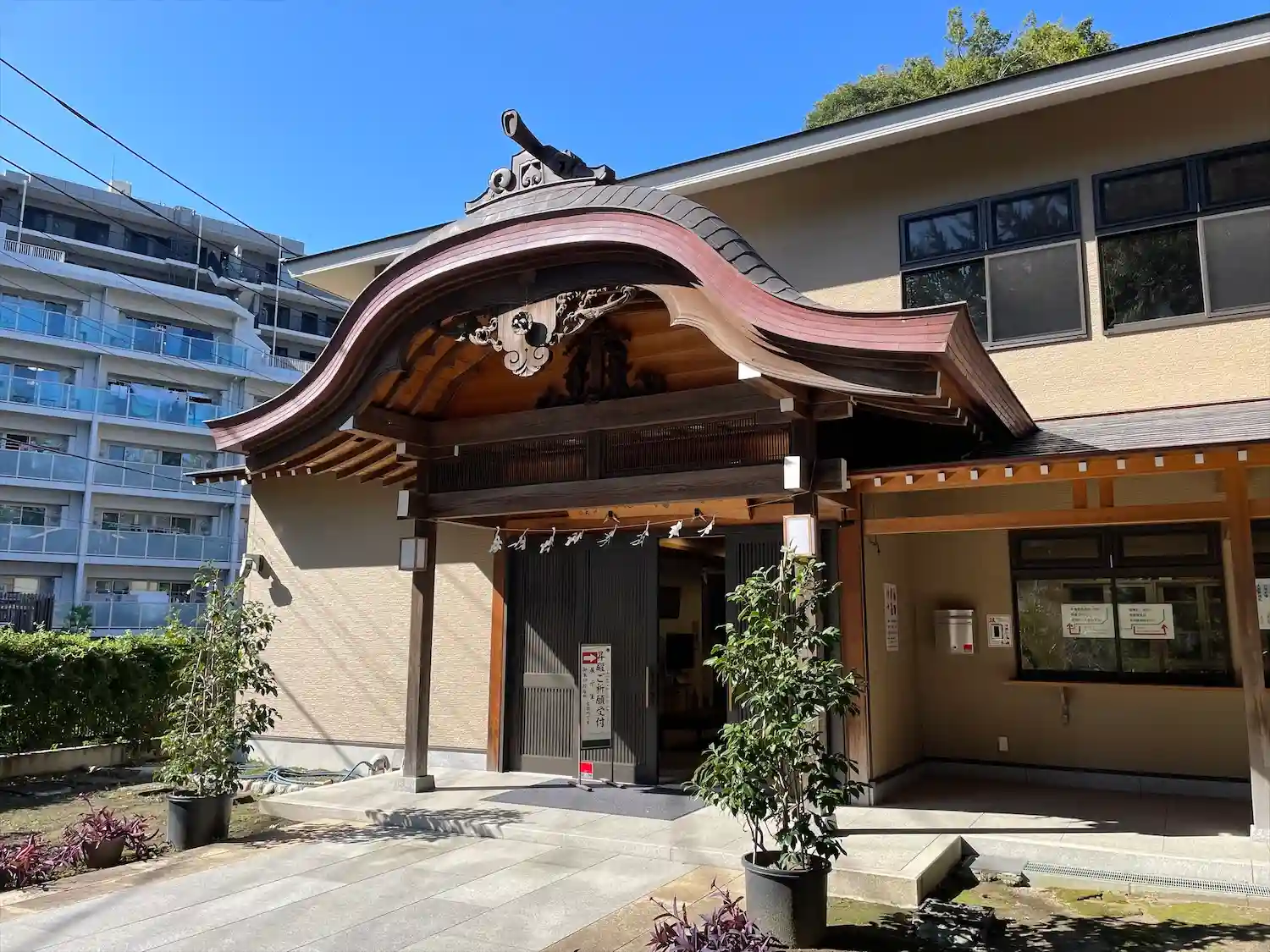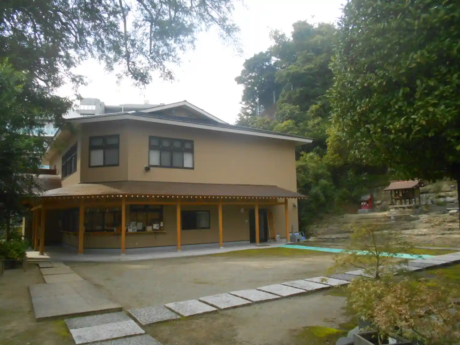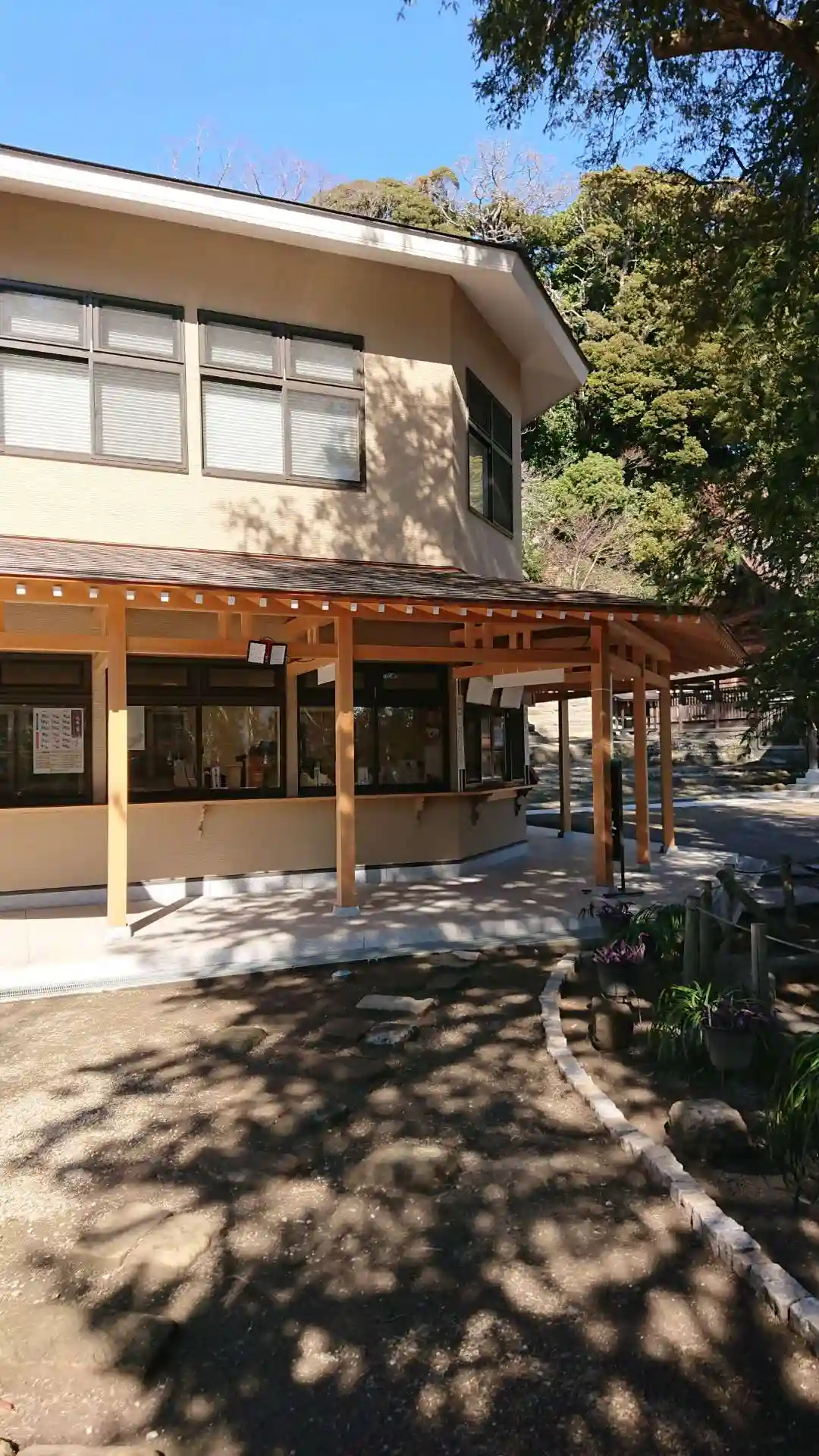 08-2) 御守りなどを授受する窓が広く立派な寺務所の側面方向と、