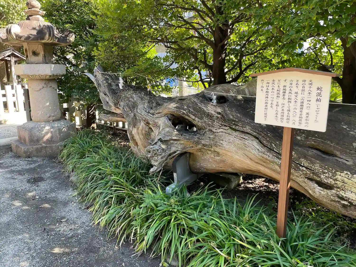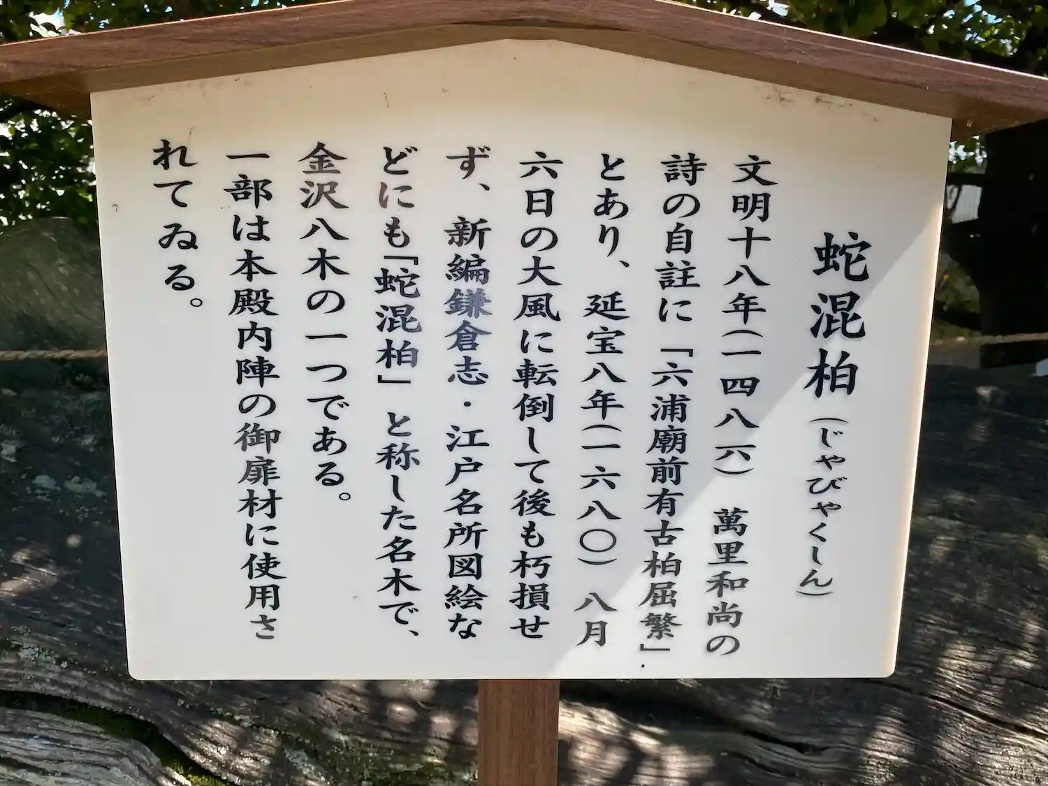 蛇混柏と呼ばれる名木です。