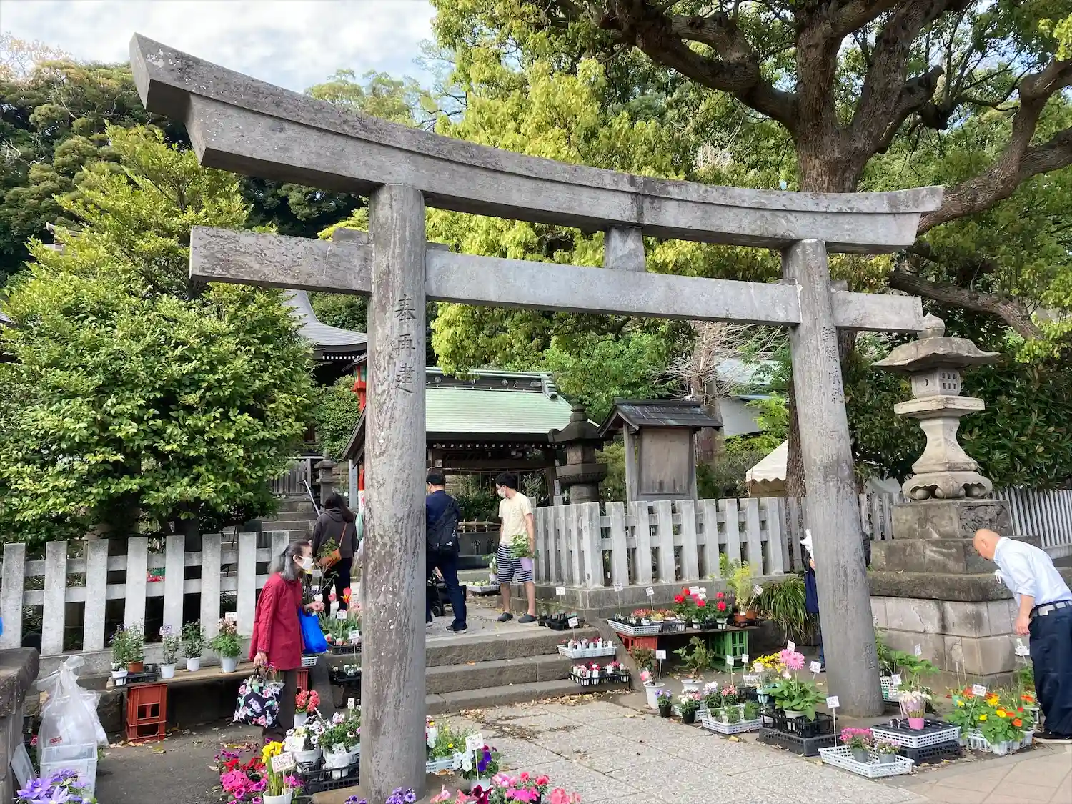 撮らなかったが、参道の両翼には 写真01)のような花の苗が並べられていた。