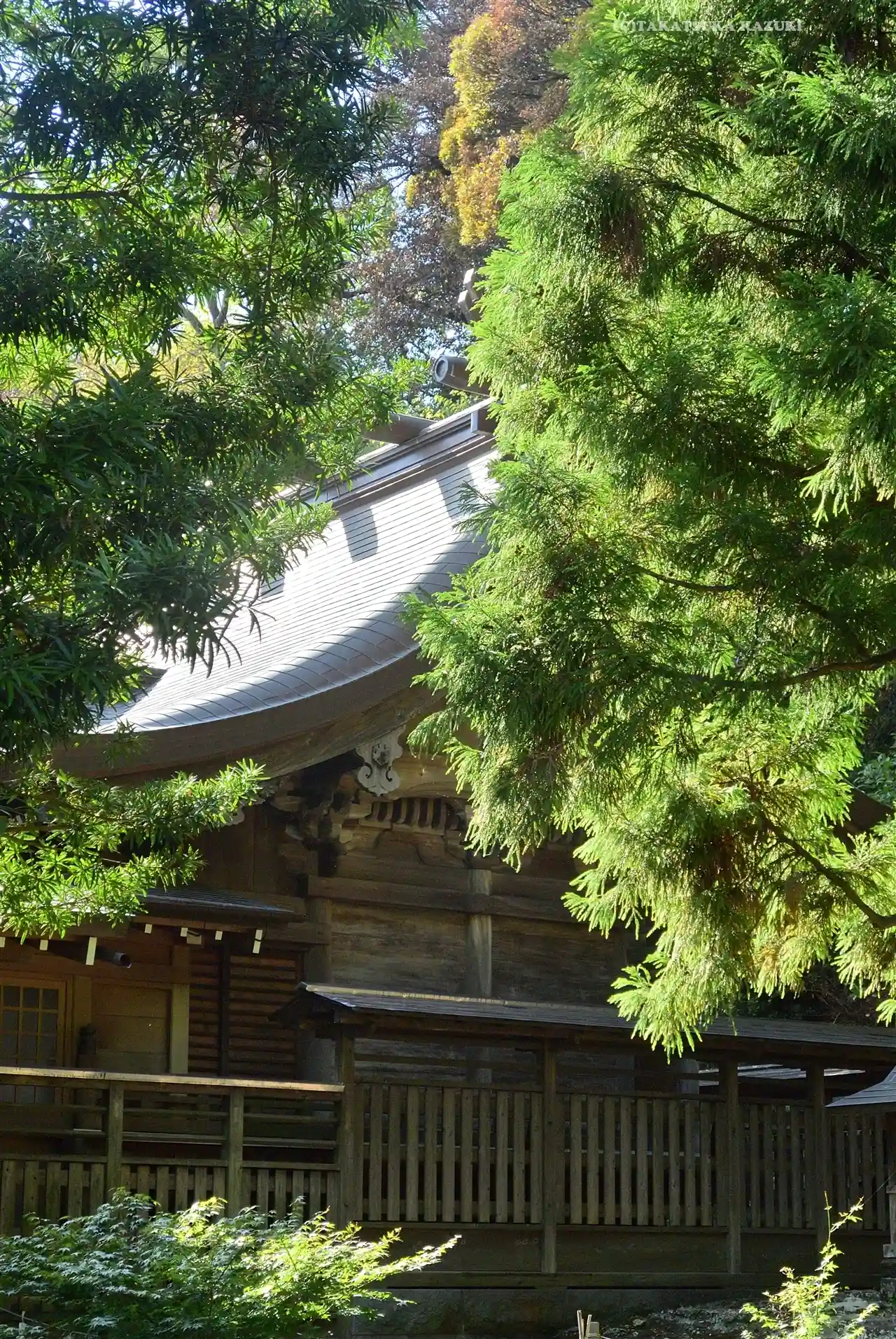 02-1) 奥の社殿 と 手前の手水舎。