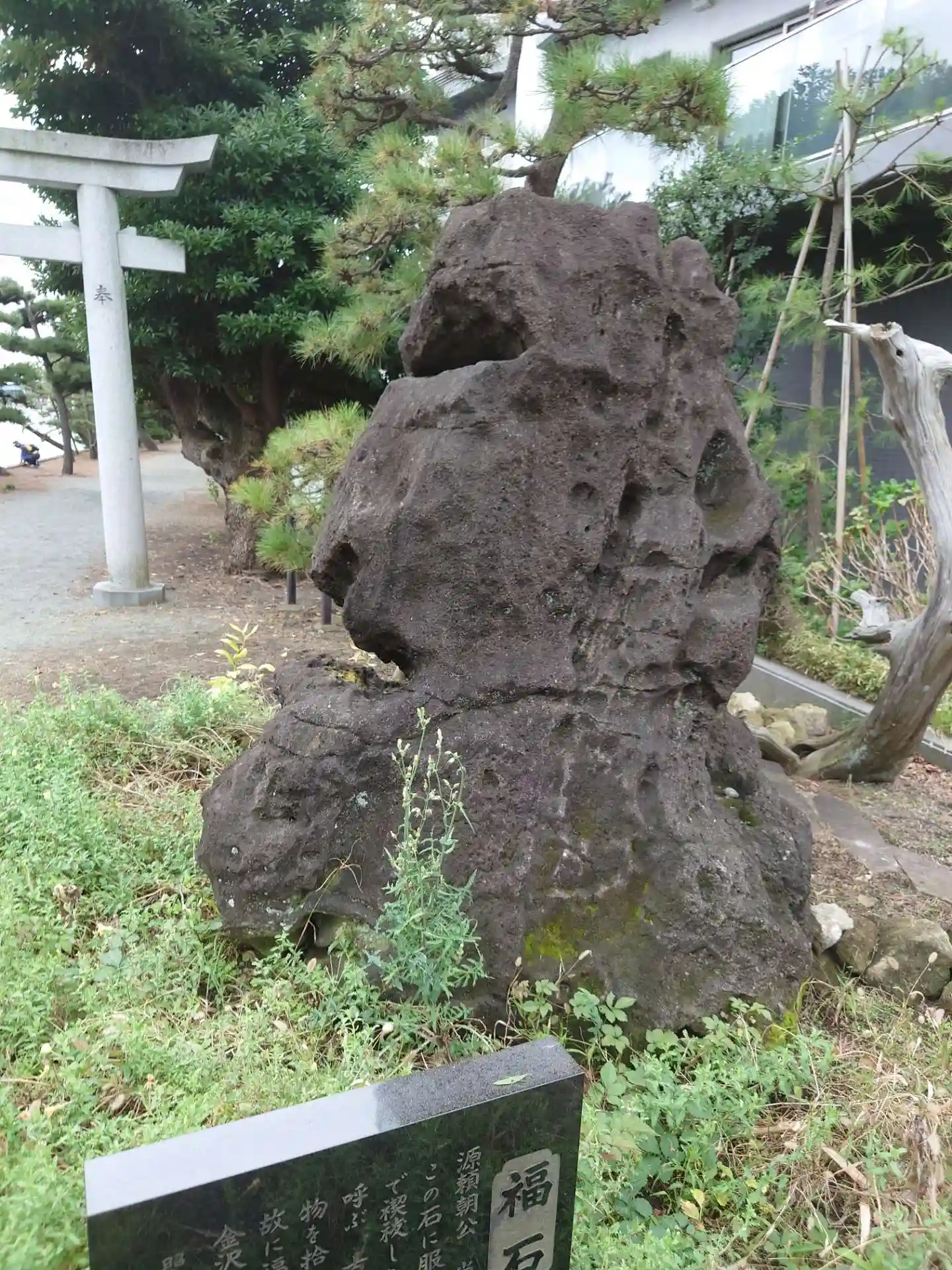 福石。源頼朝がここに服を掛けてお祓いしたことから福石と名付けられた