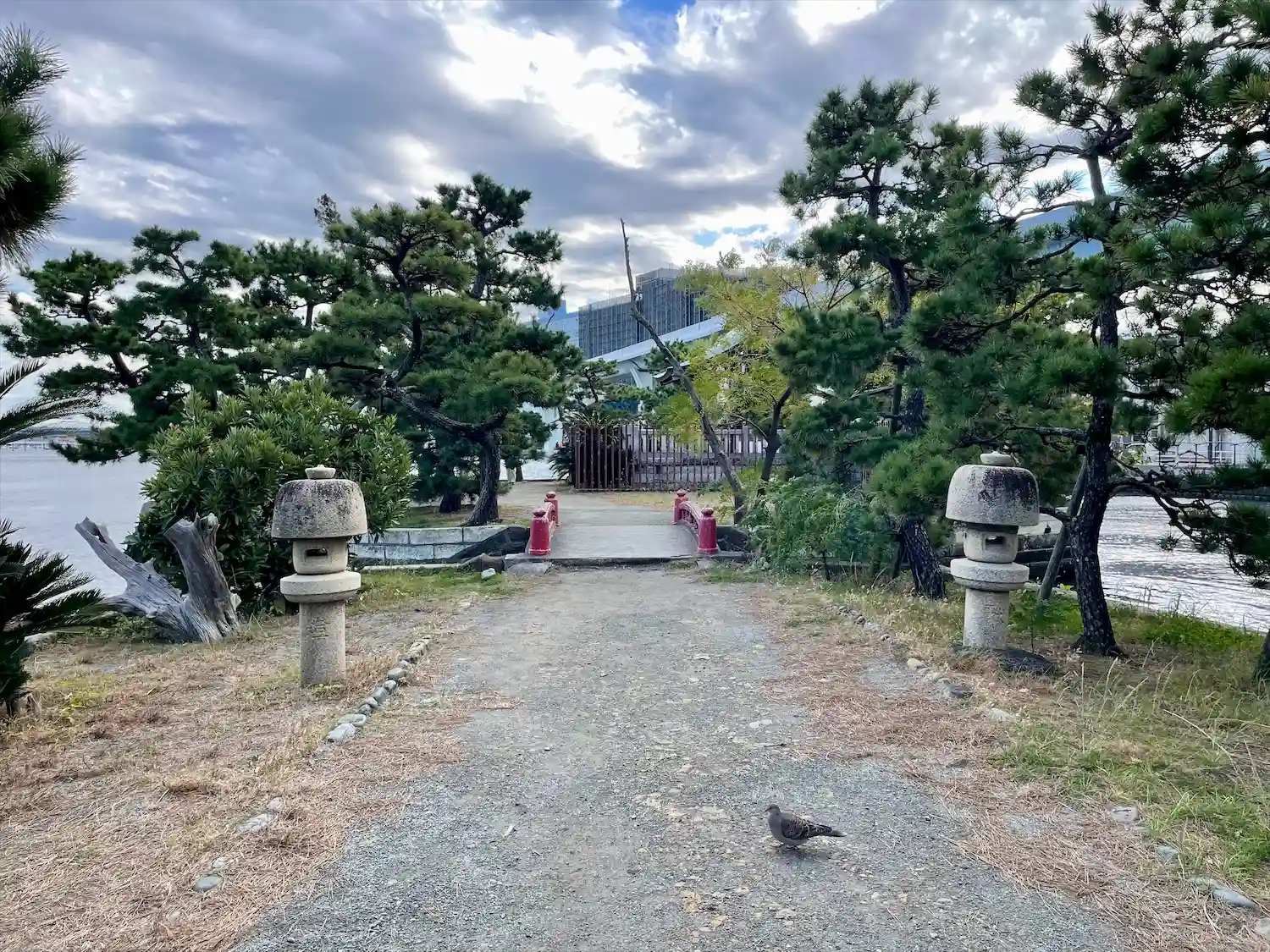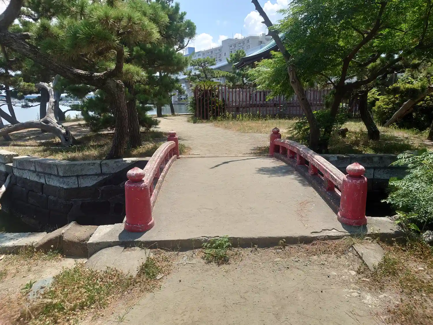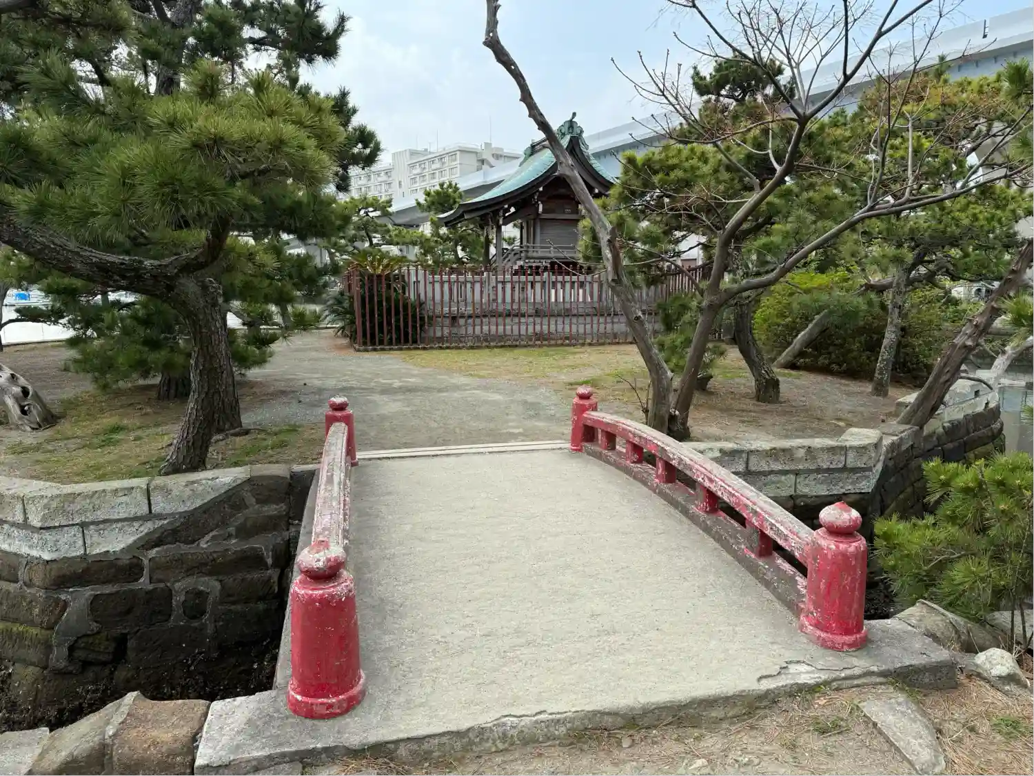 小さい朱色の橋を渡って、小さな島へ