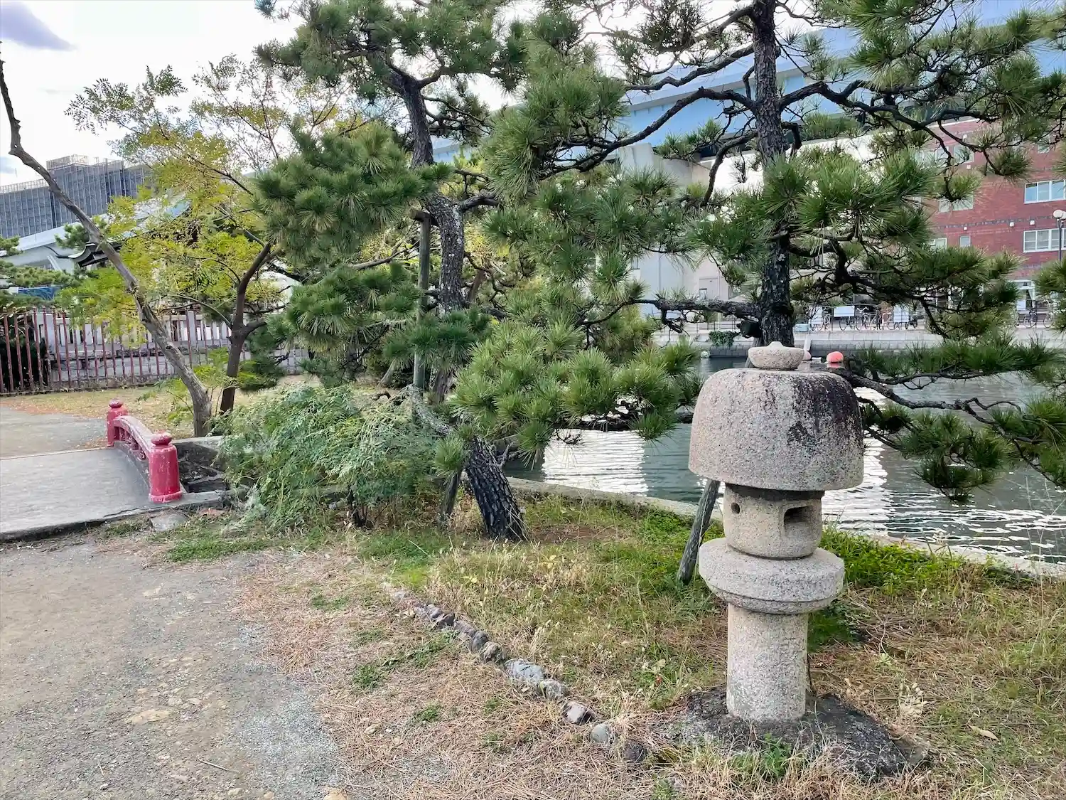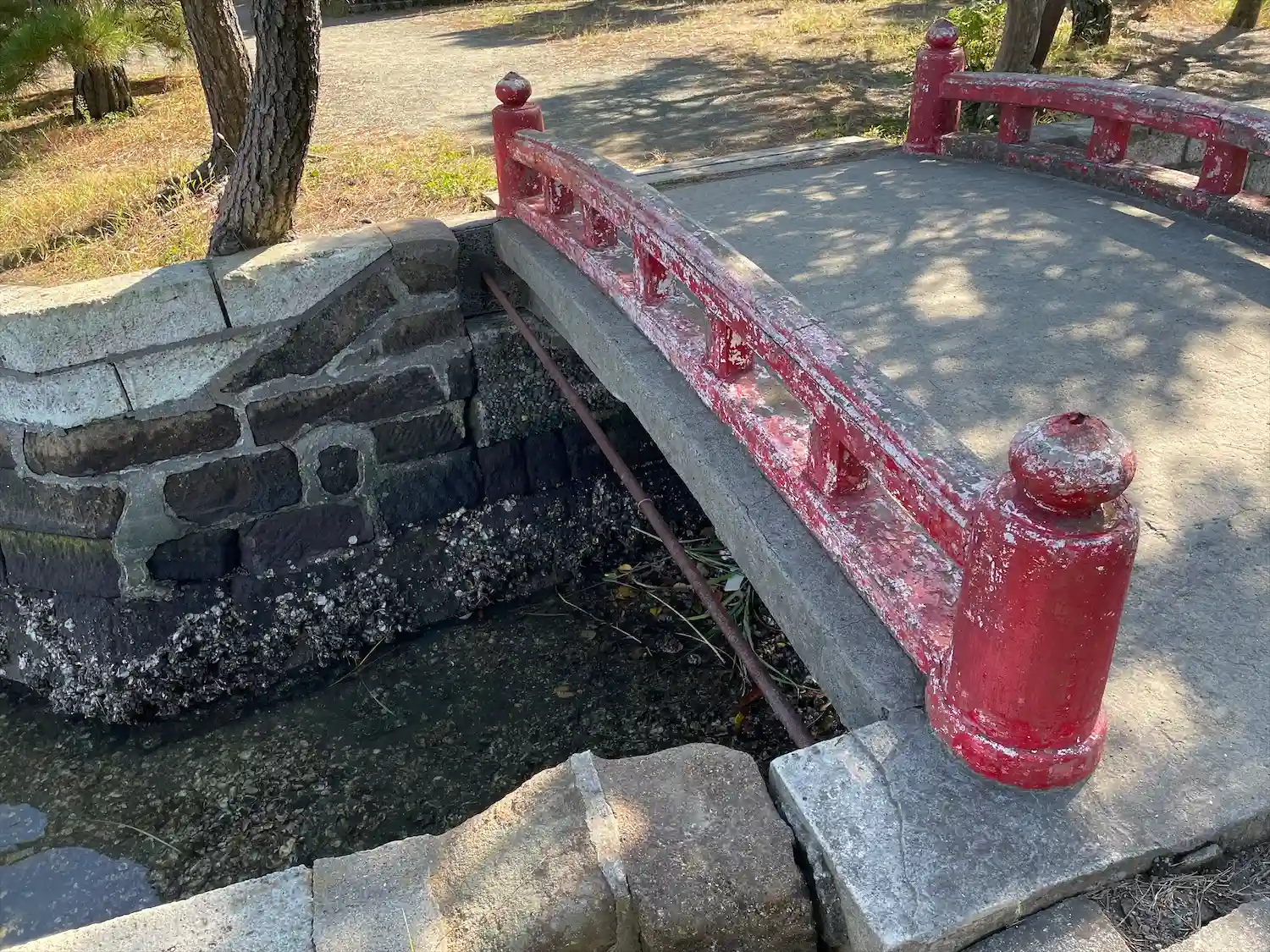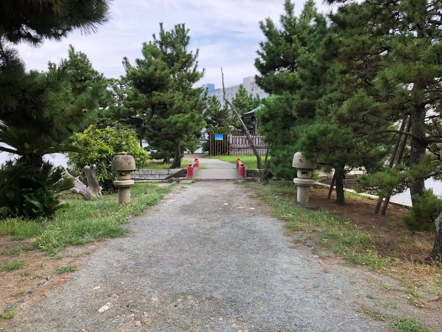 小さい朱色の橋を渡って、小さな島へ