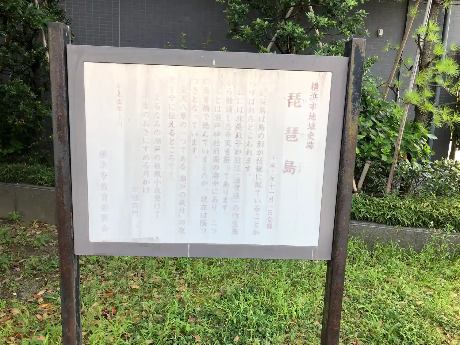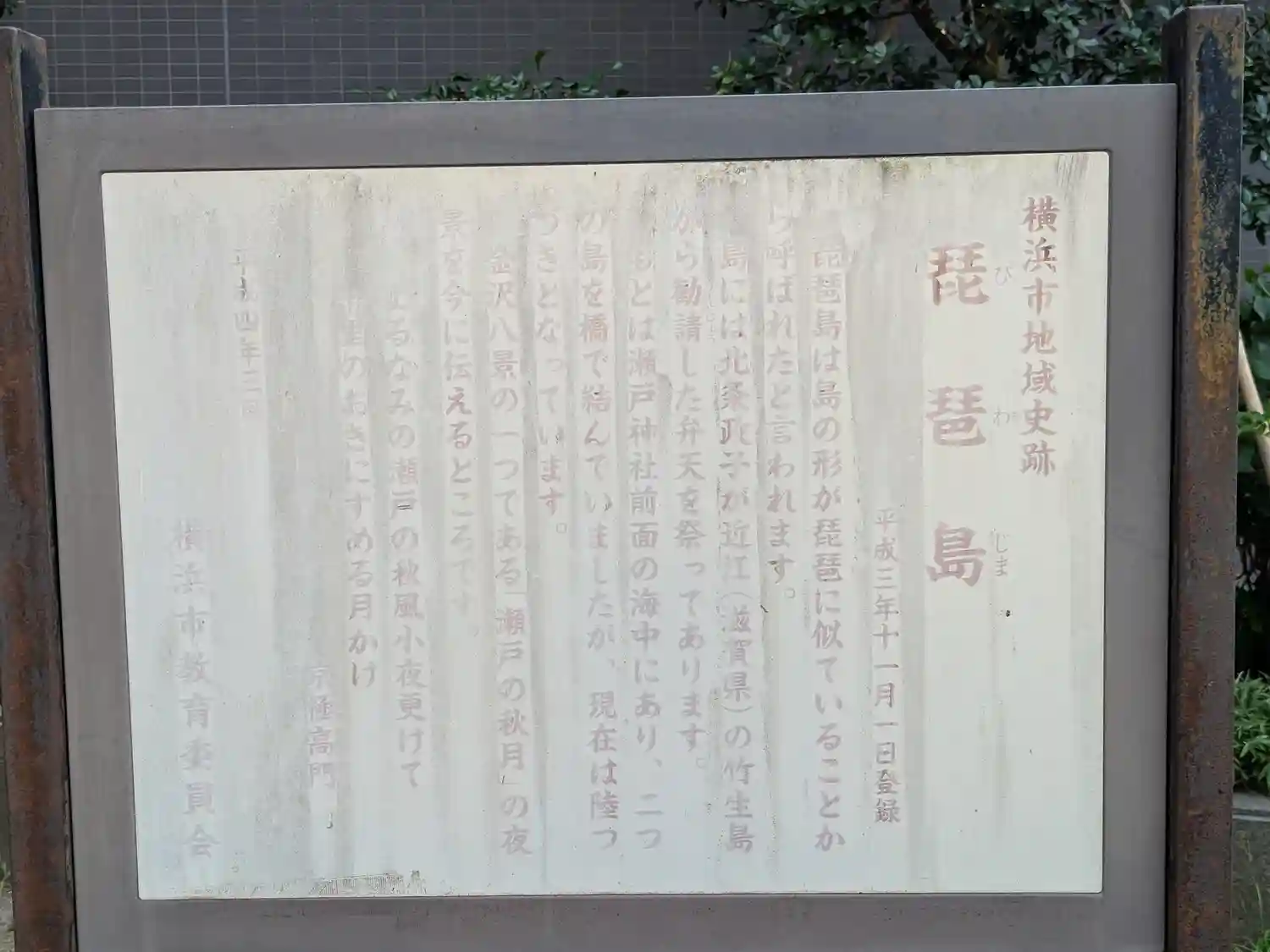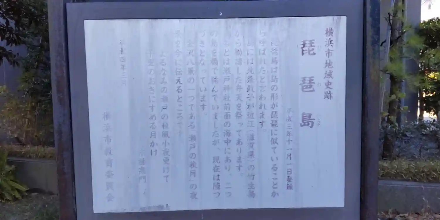 横浜市金沢区瀬戸の平潟湾に突き出した琵琶島に鎮座する神社で、瀬戸神社の境外社である。