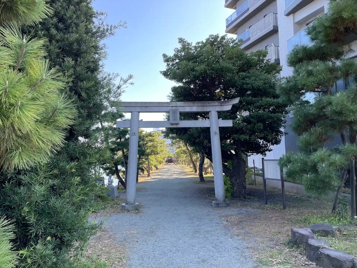 海の側で、参道が短いですが、とても綺麗です。
