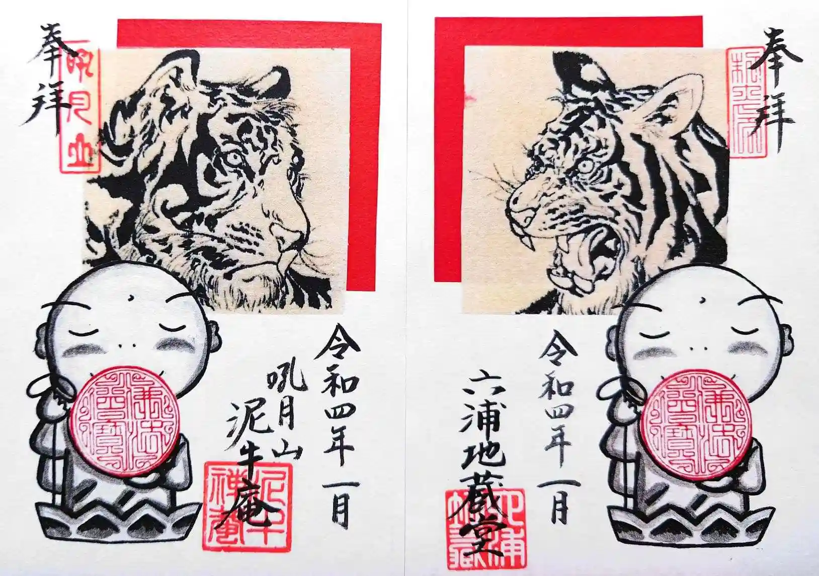 漫画「ZEN」の作者・漫画家高島正嗣先生書き下ろしの御朱印「阿吽の虎」。