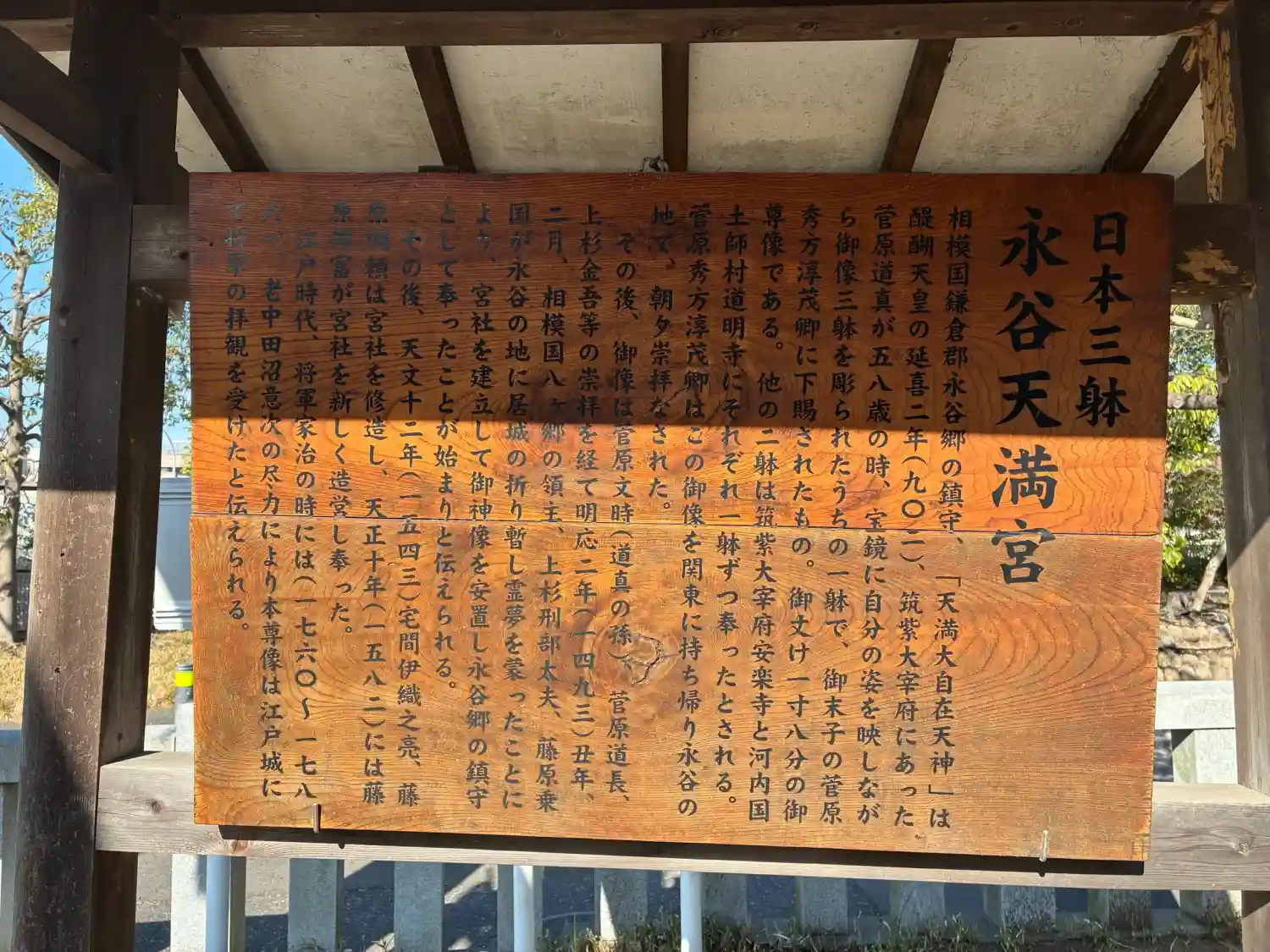 相模国永谷郷(現在の上永谷ほか)座の天満大自在天神の御祭神である菅原道真公は、第六十代醍醐天皇の昌泰二年(899)、右大将に任ぜられた。