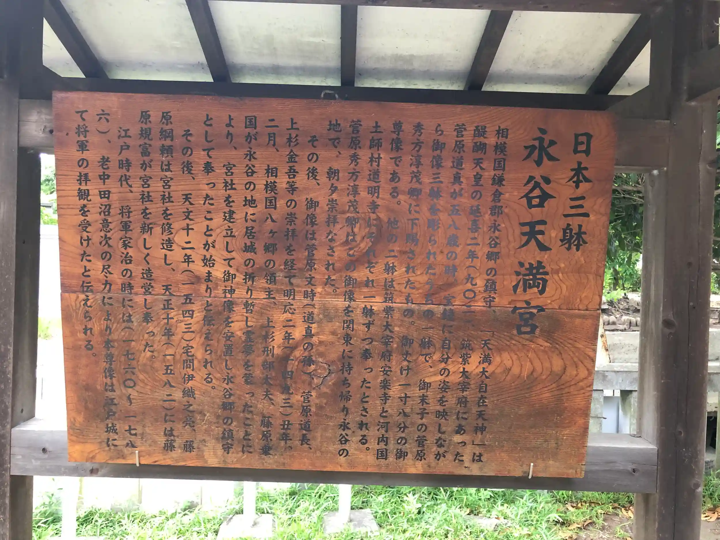 新編相模国風土記稿によれば、道真像は道真左遷に伴い播磨国へ流刑となった道真五男の菅秀才こと淳茂に与えられたもので、淳茂はのちに関東へ下向し、相模国鎌倉郡永谷郷に居館を構えて道真像を奉祀したといわれている。