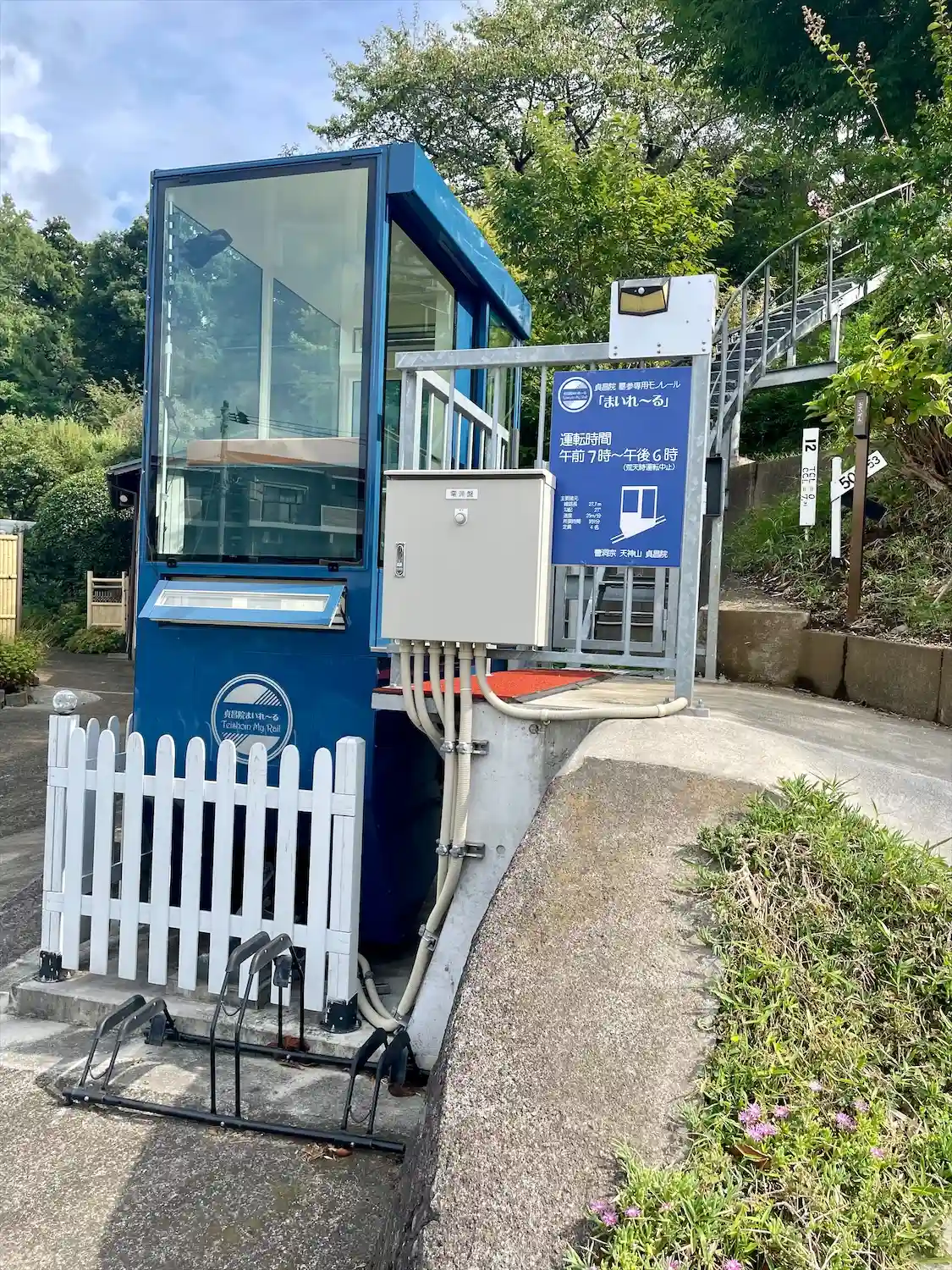 駐車場から墓地に上がるモノレール🙂