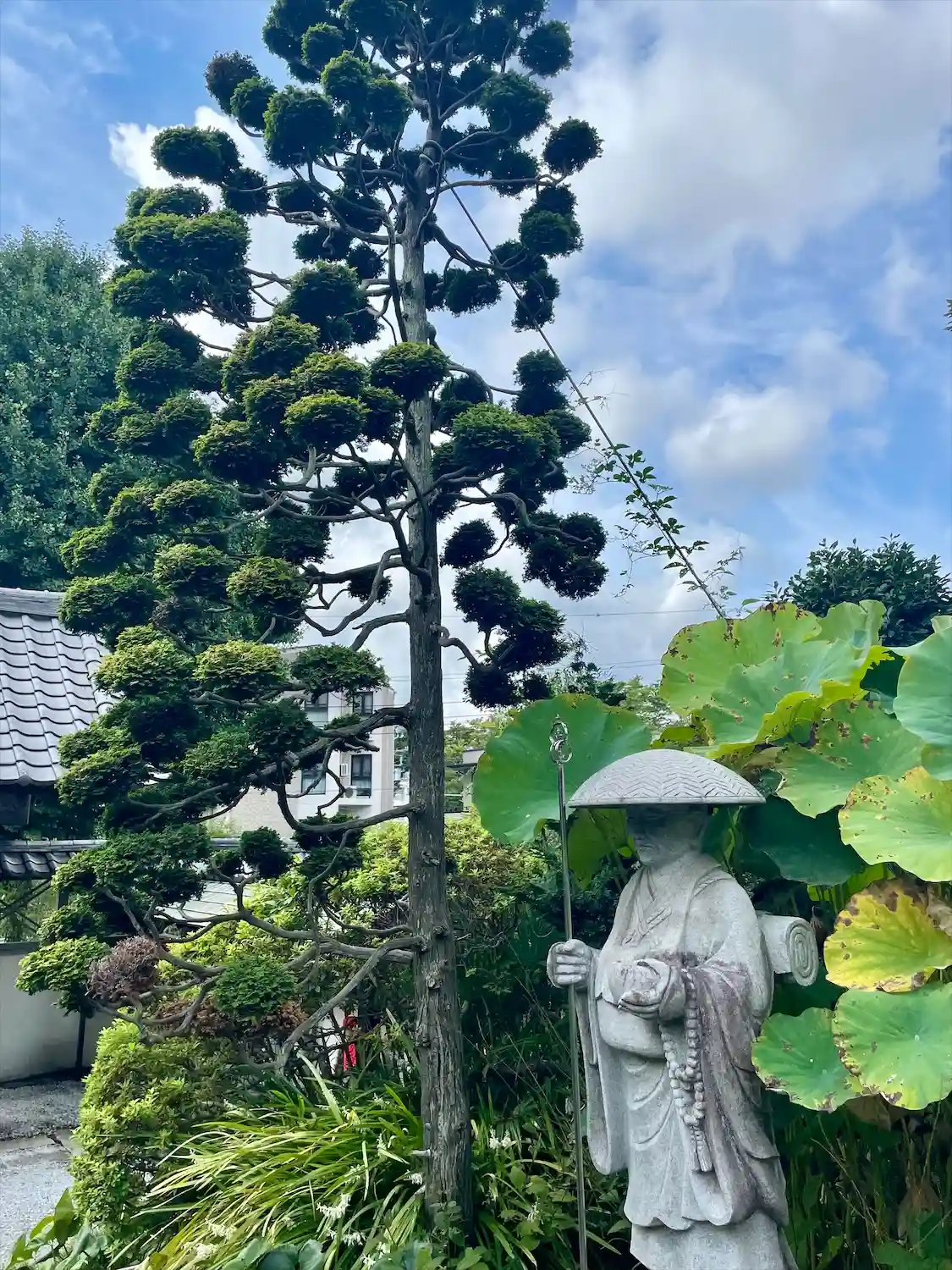 蓮を背負った道元禅師像