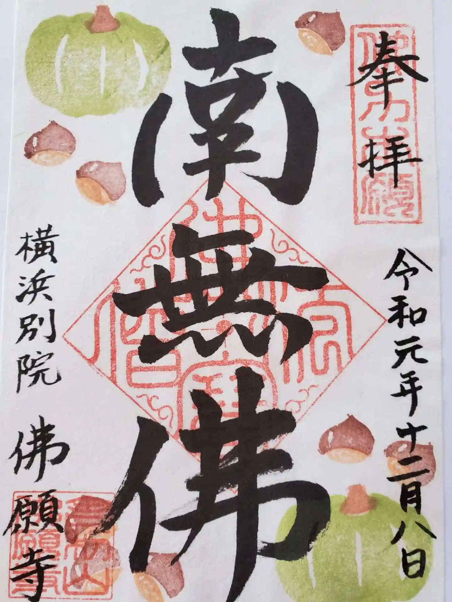 季節限定の御朱印。かぼちゃと栗