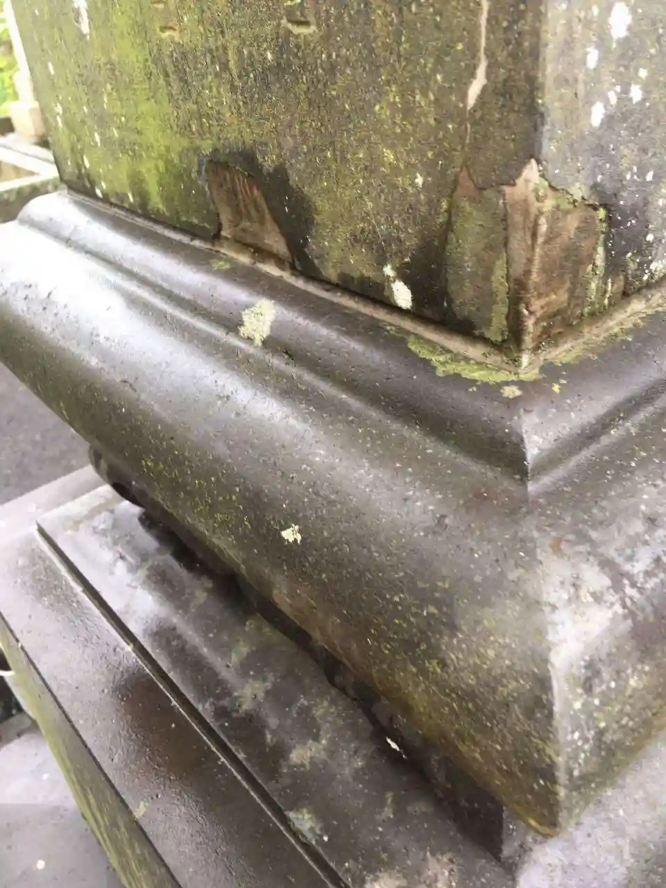▲(施工前) 供養塔も下部に関しては、随所において汚れが目立ちます。