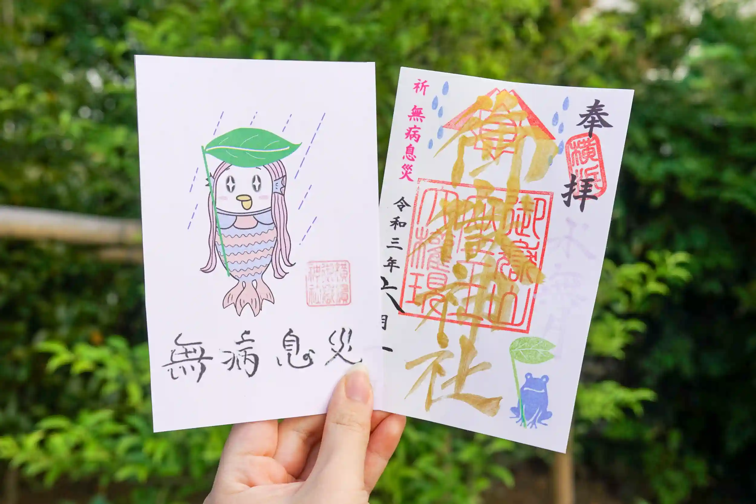 6月のデザインは雨と傘をさしたカエルの御朱印にしてみました🐸