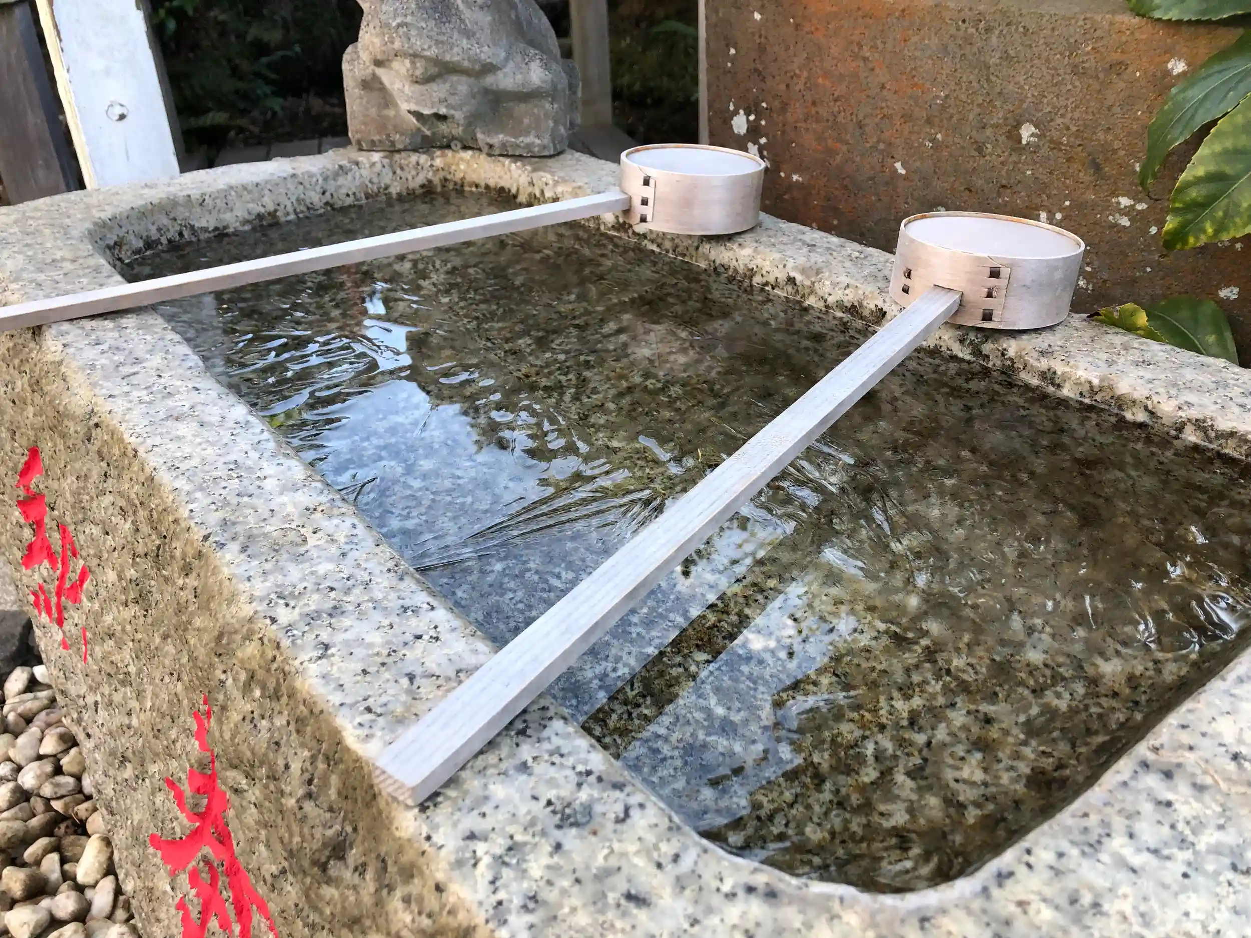 今日はとても寒く、手水の水がお昼くらいまで凍っていました。
