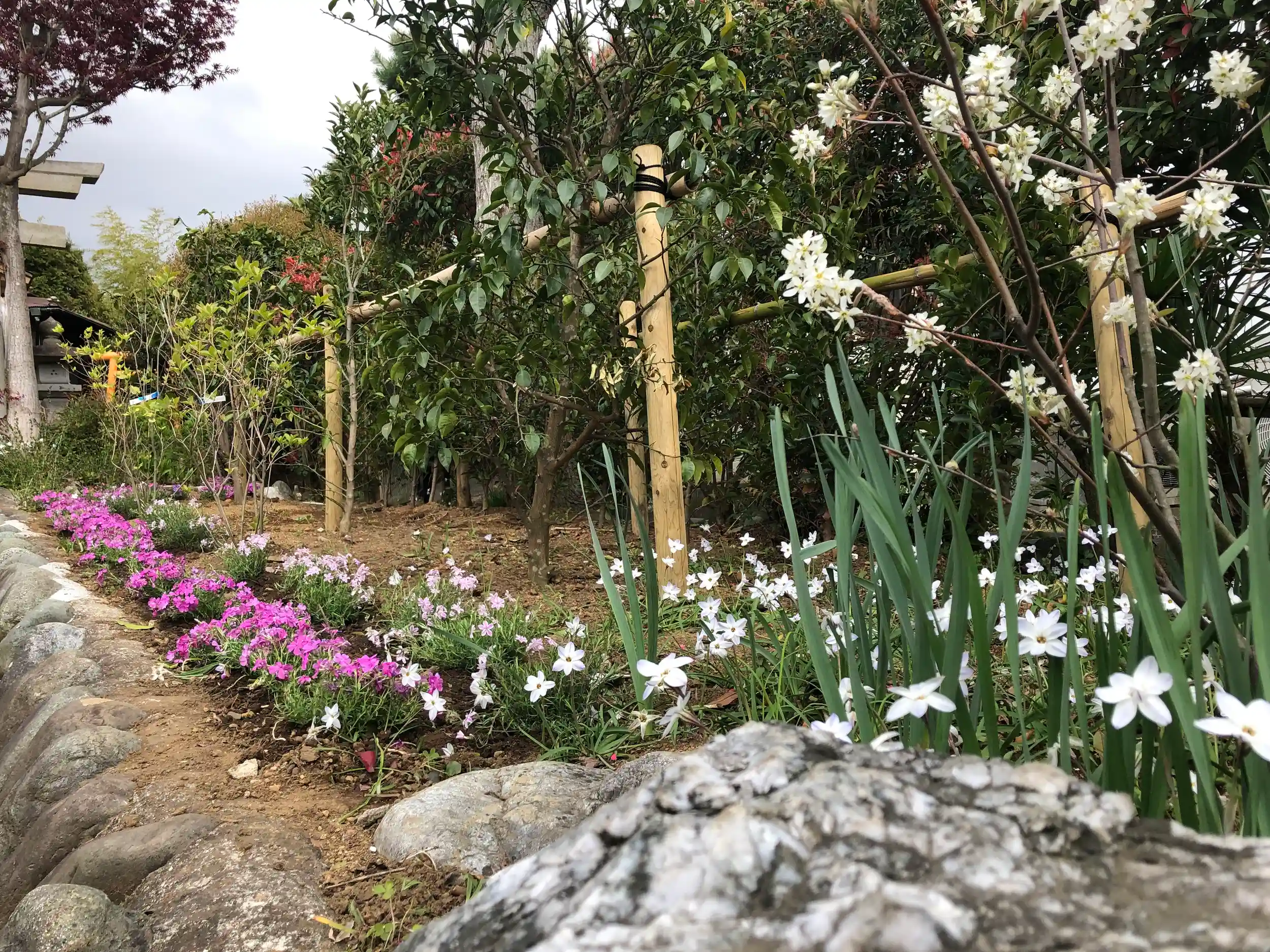 参道に芝桜を植えました🌸