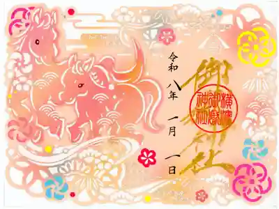 左下には、横浜御嶽神社の特徴である神仏習合を表す神道護摩の護摩壇の印を押しています。