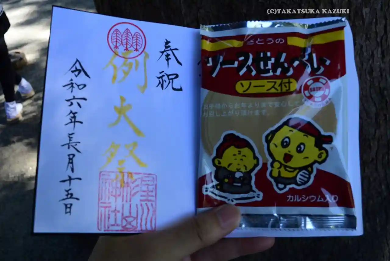 杉山神社の印のおまんじゅうをいただきました