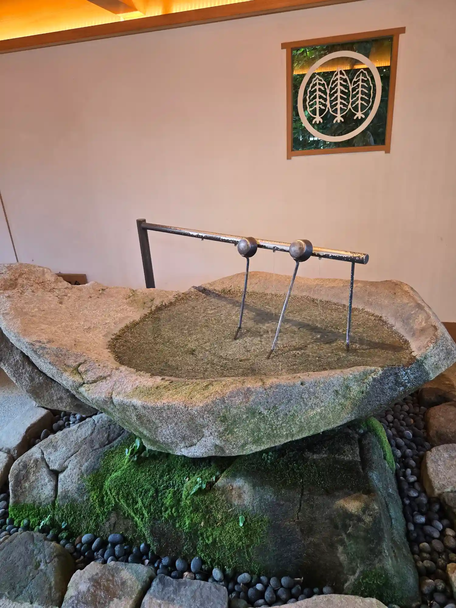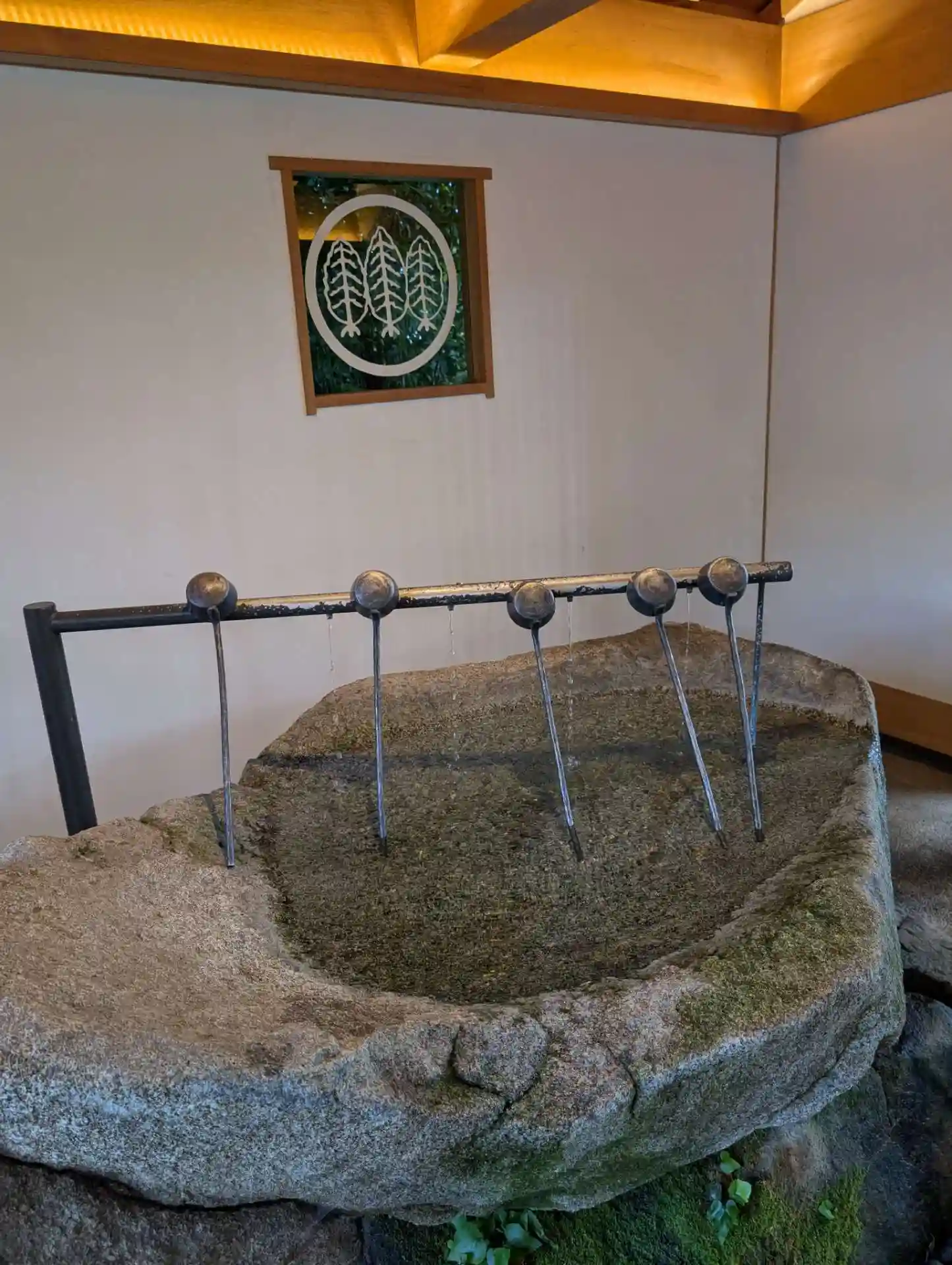 手水が間接照明でオシャレ。
