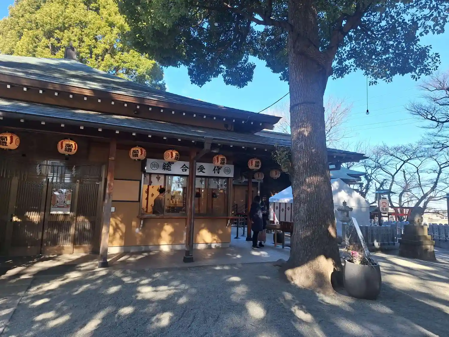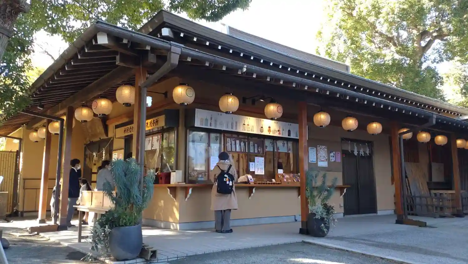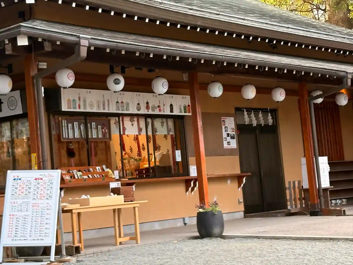 社殿左側の社務所・授与所。社務所の裏が駐車場。