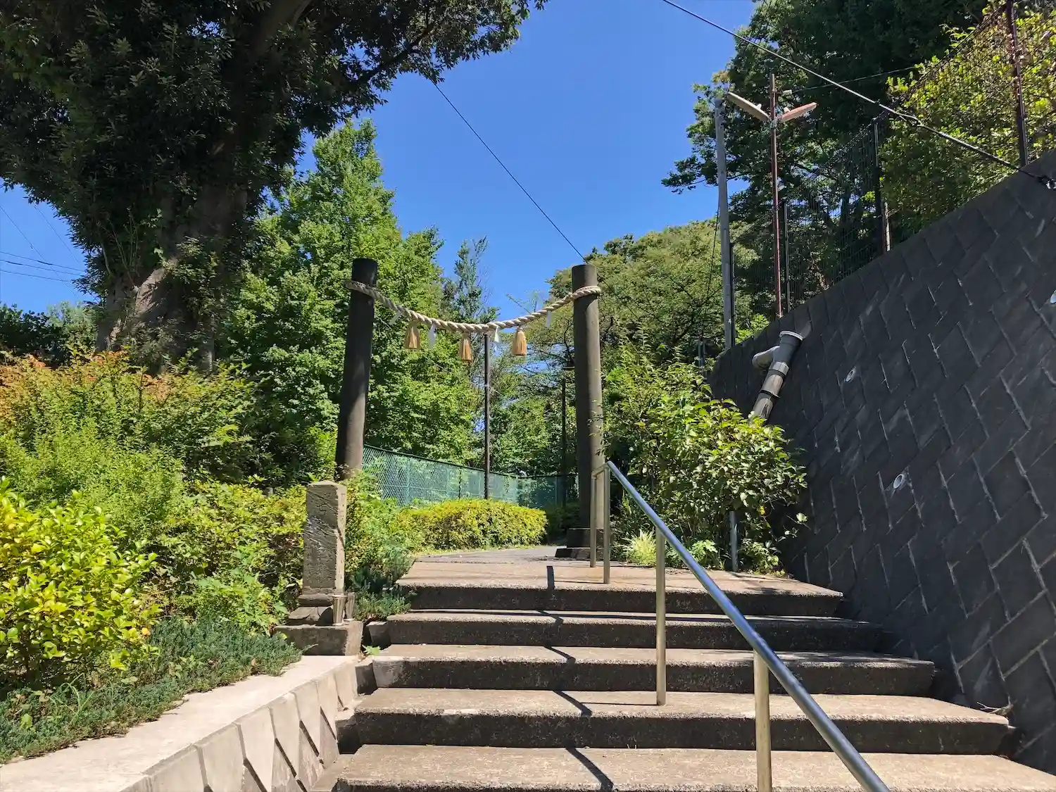 徒歩の場合、明神台公園の向かいにある階段を降りるのが一番の近道です。