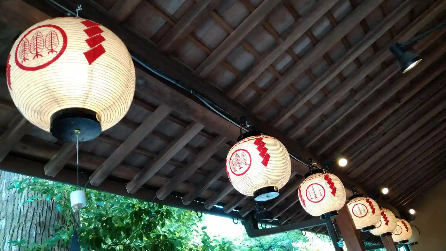 社務所の提灯、風に揺れてました。iphone のライブカメラで撮ると灯りの揺れる様がとても綺麗です。