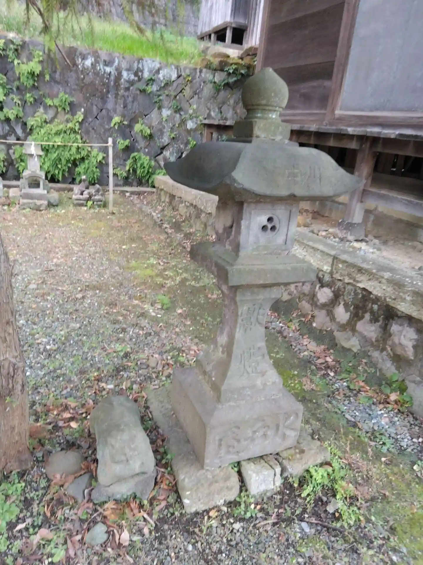 灯籠のたもとには、石の置物・・ではなく狛犬さん。