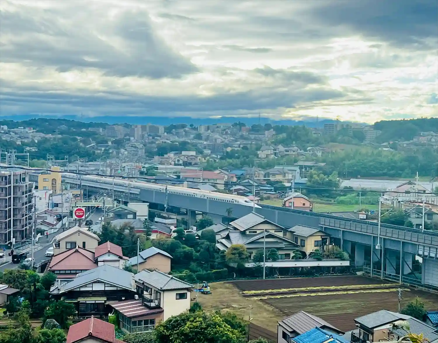 ちょうど新幹線が通り過ぎて行きました