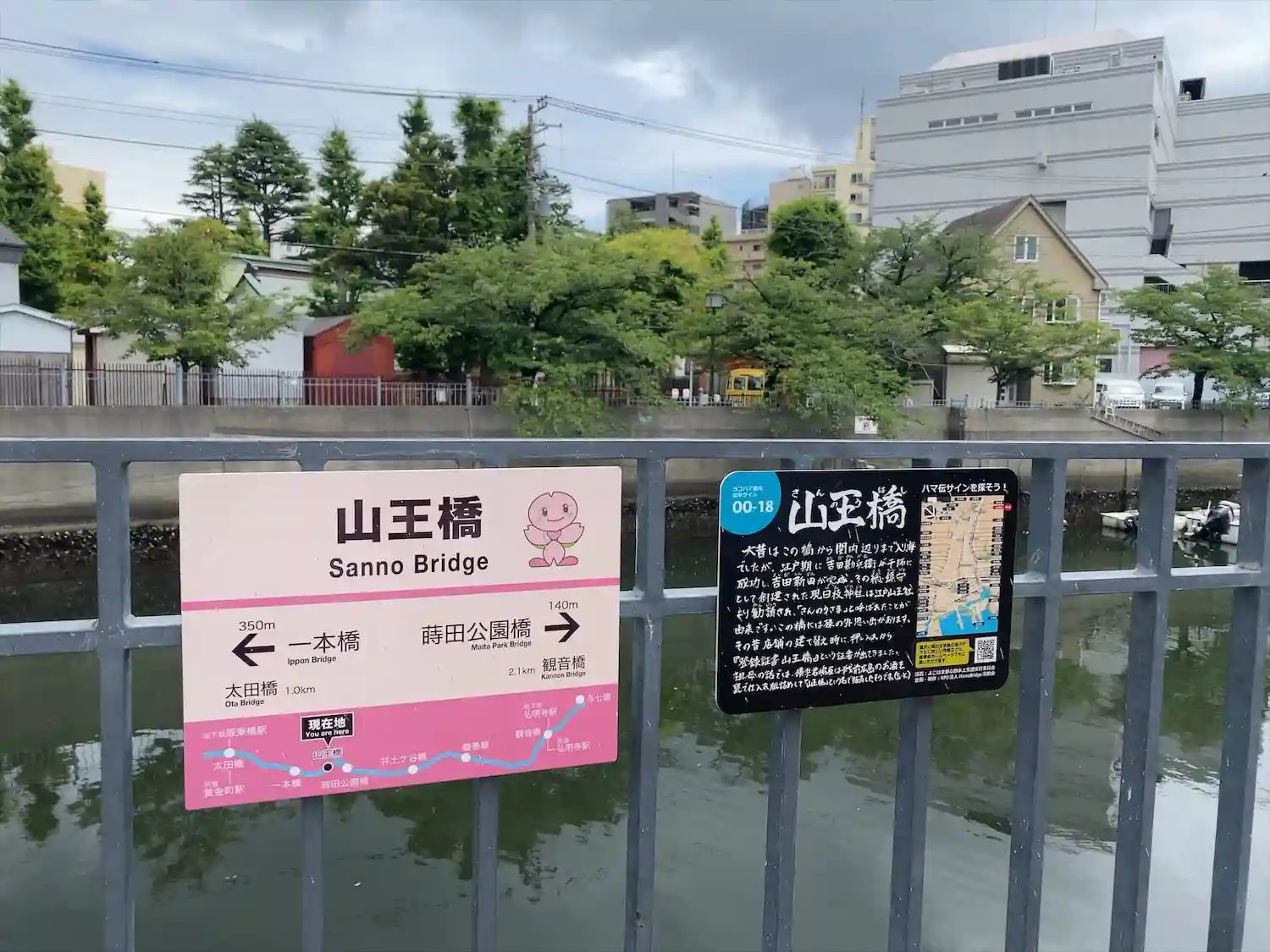 神社の後ろには大岡川が流れています。