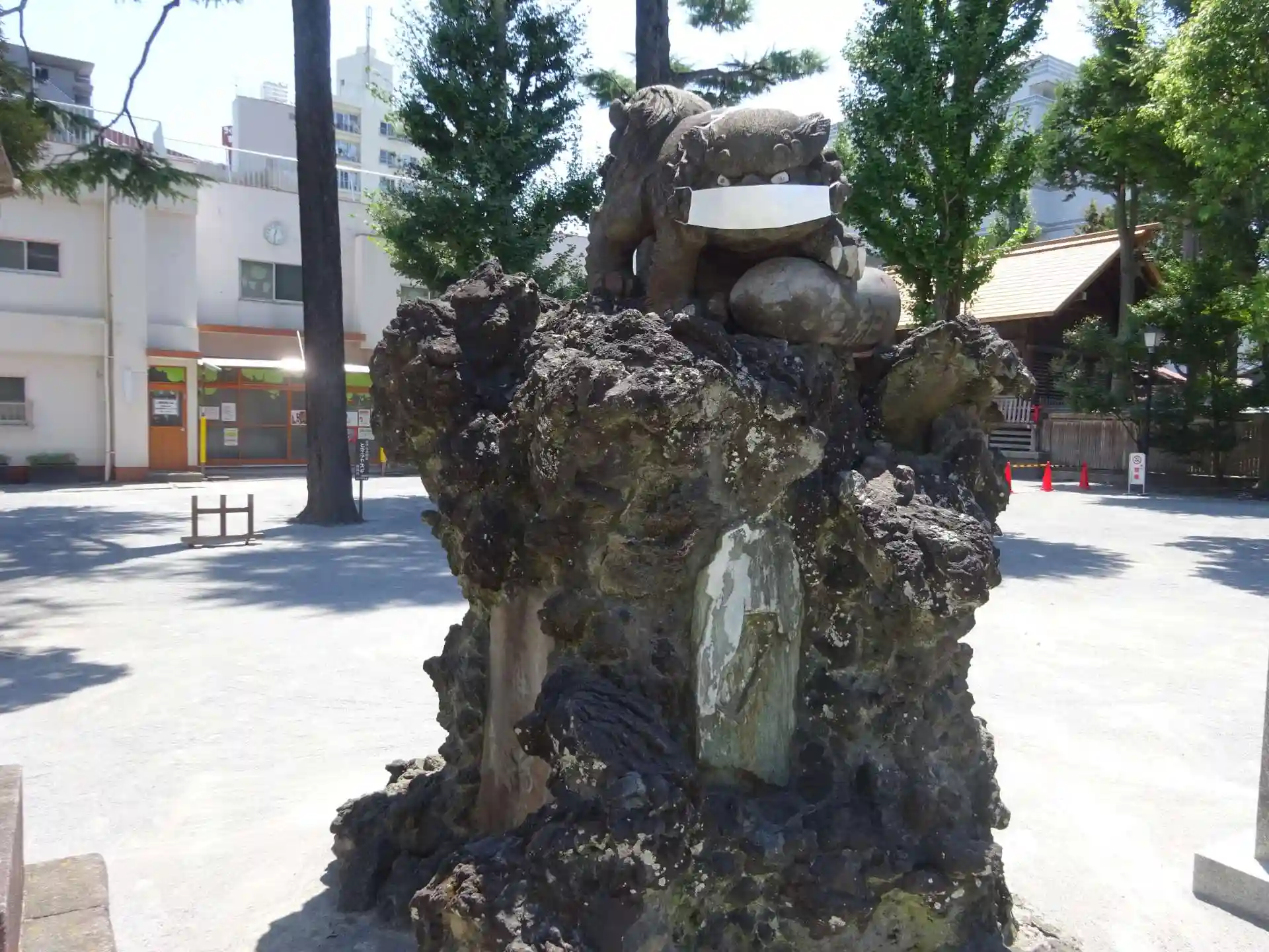 迫力満点の狛犬^^ やはりこちらもマスク着用^^;