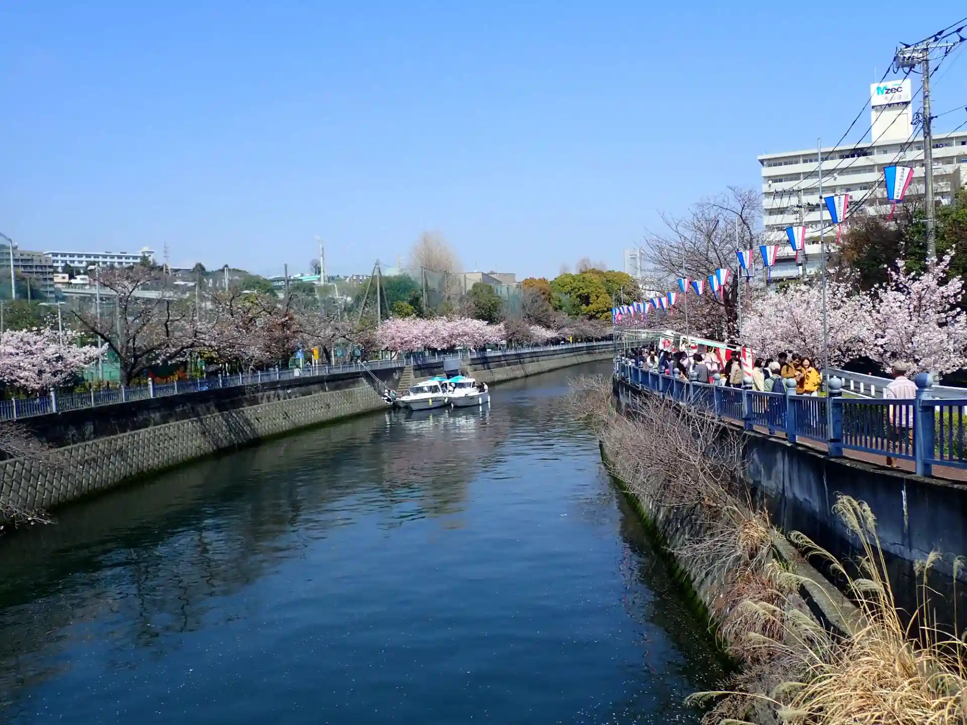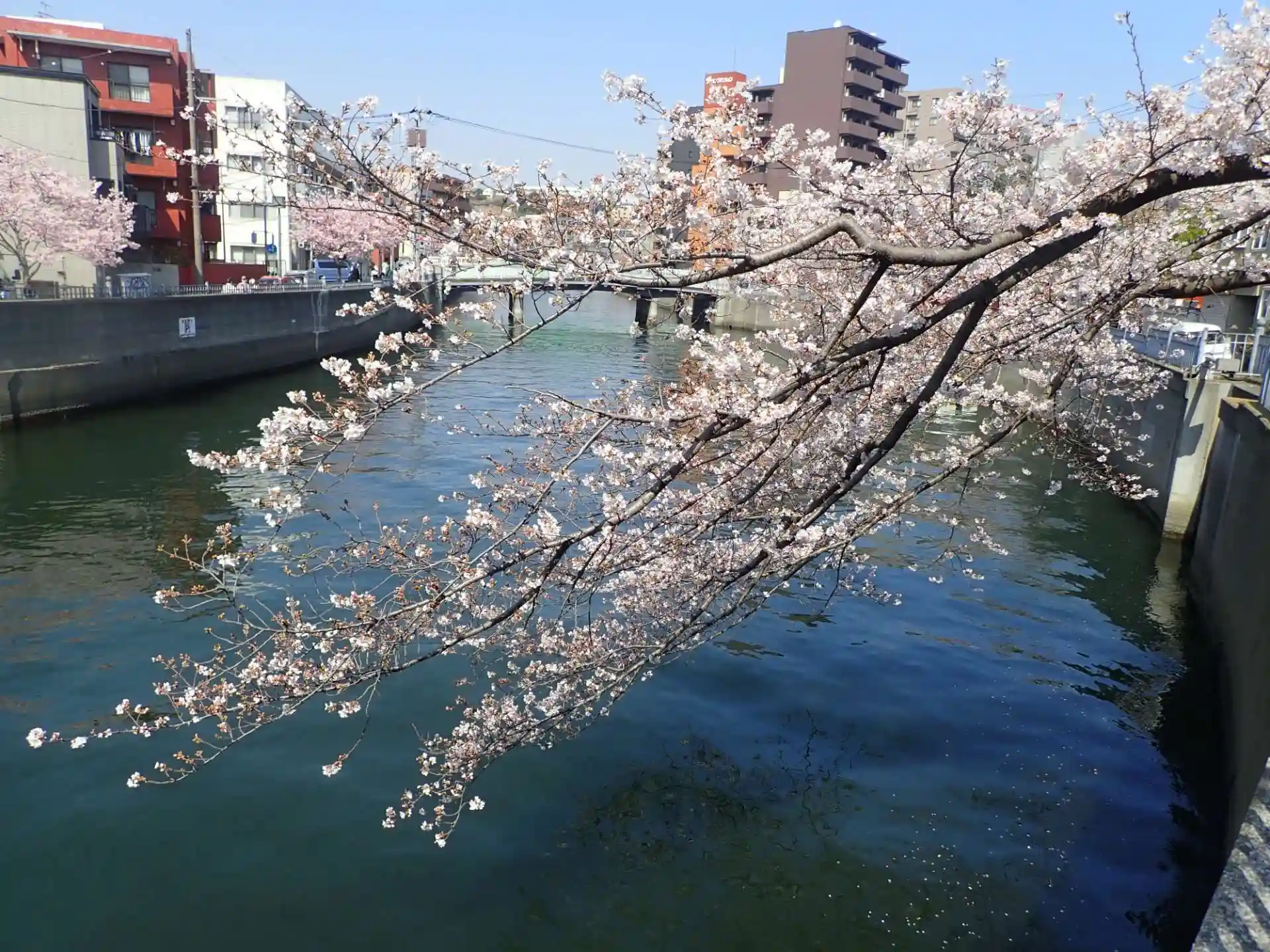 弘明寺方向を見る。両岸に桜が咲いてます🌸