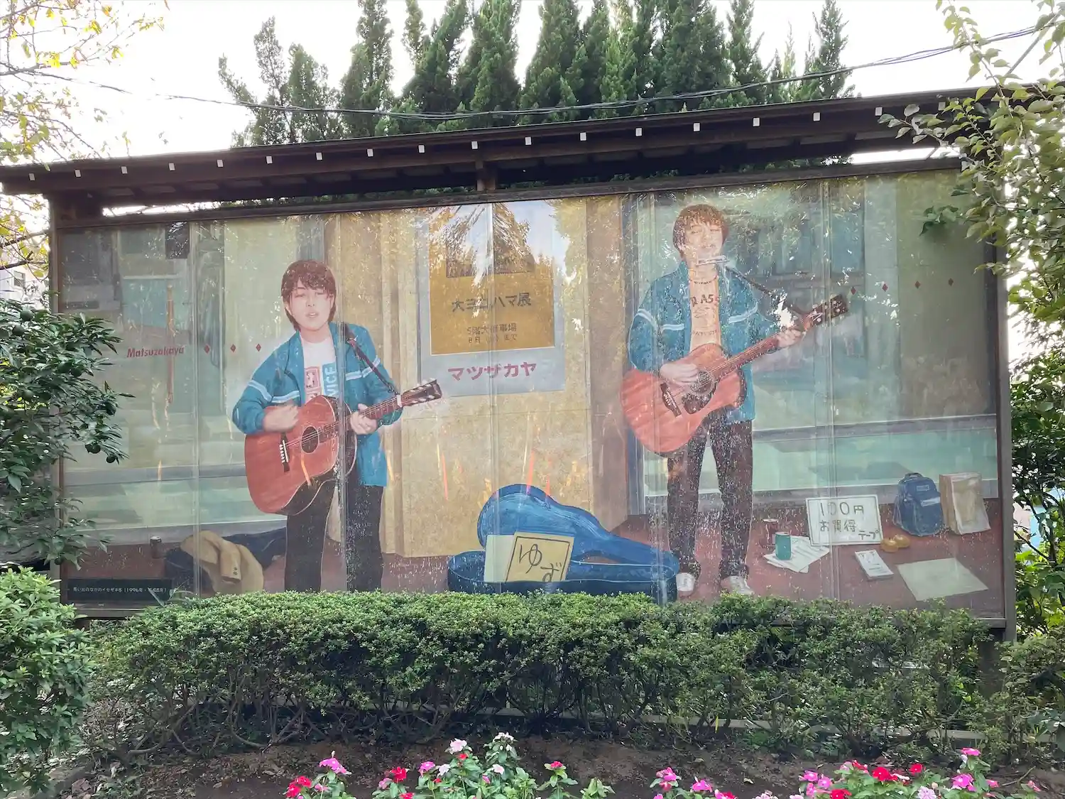 ゆずの2人の地元の地なので、伊勢佐木町での路上ライブ時代のゆずのパネルが😊