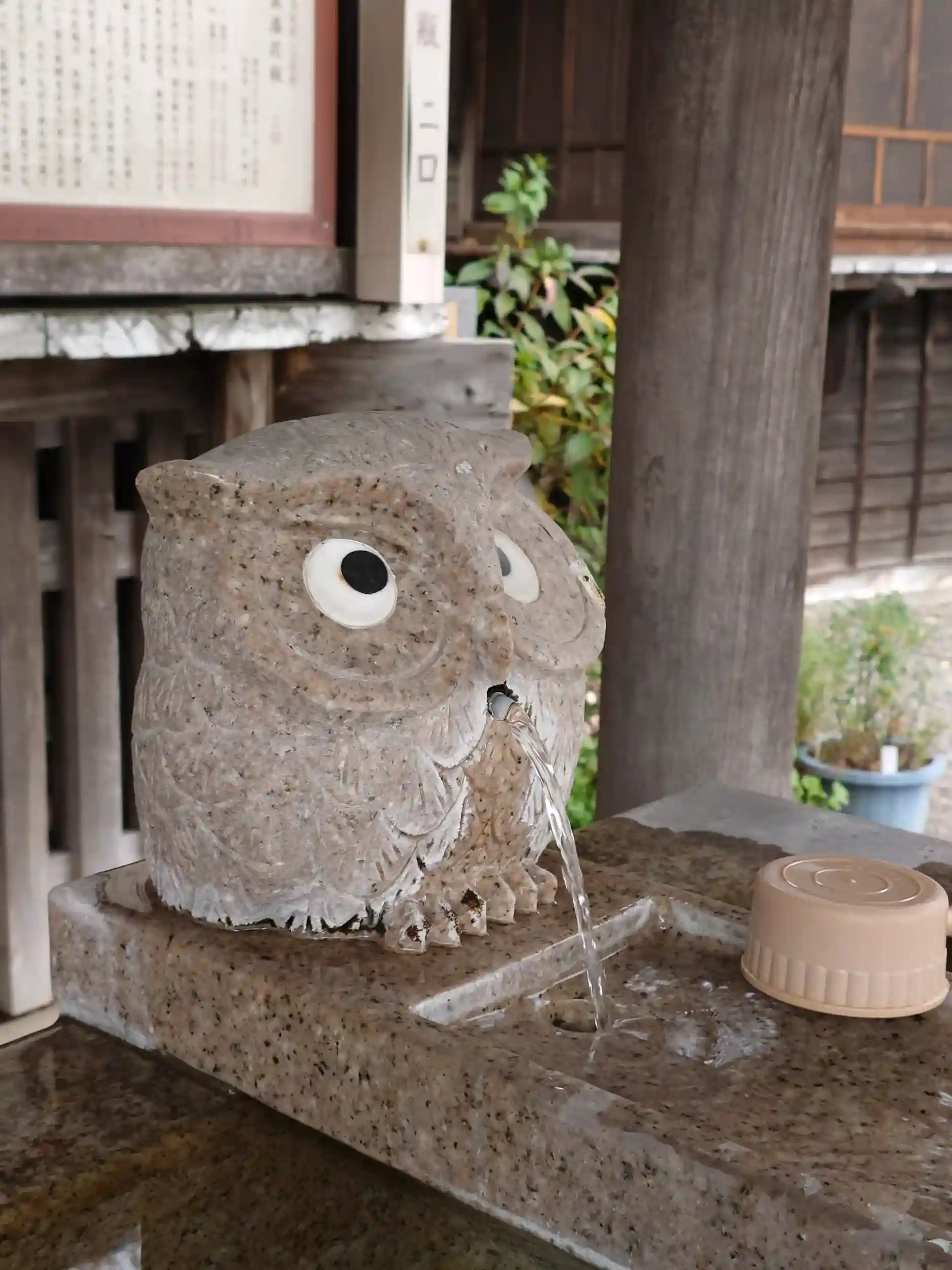 手水舎には梟と象が!かわいい🥰