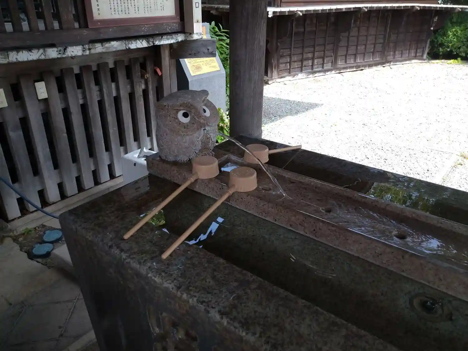 手水舎にはフクロウとゾウがいます。