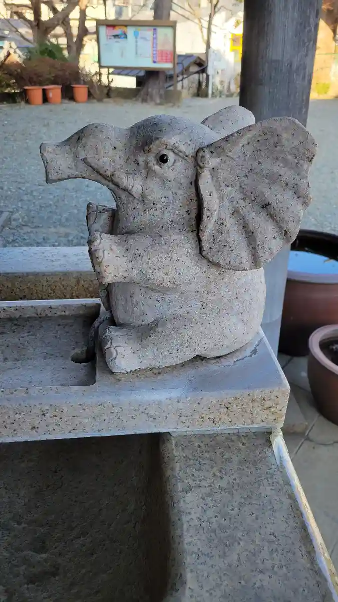 手水舎のぞうさん。左側が象で右側がふくろう。