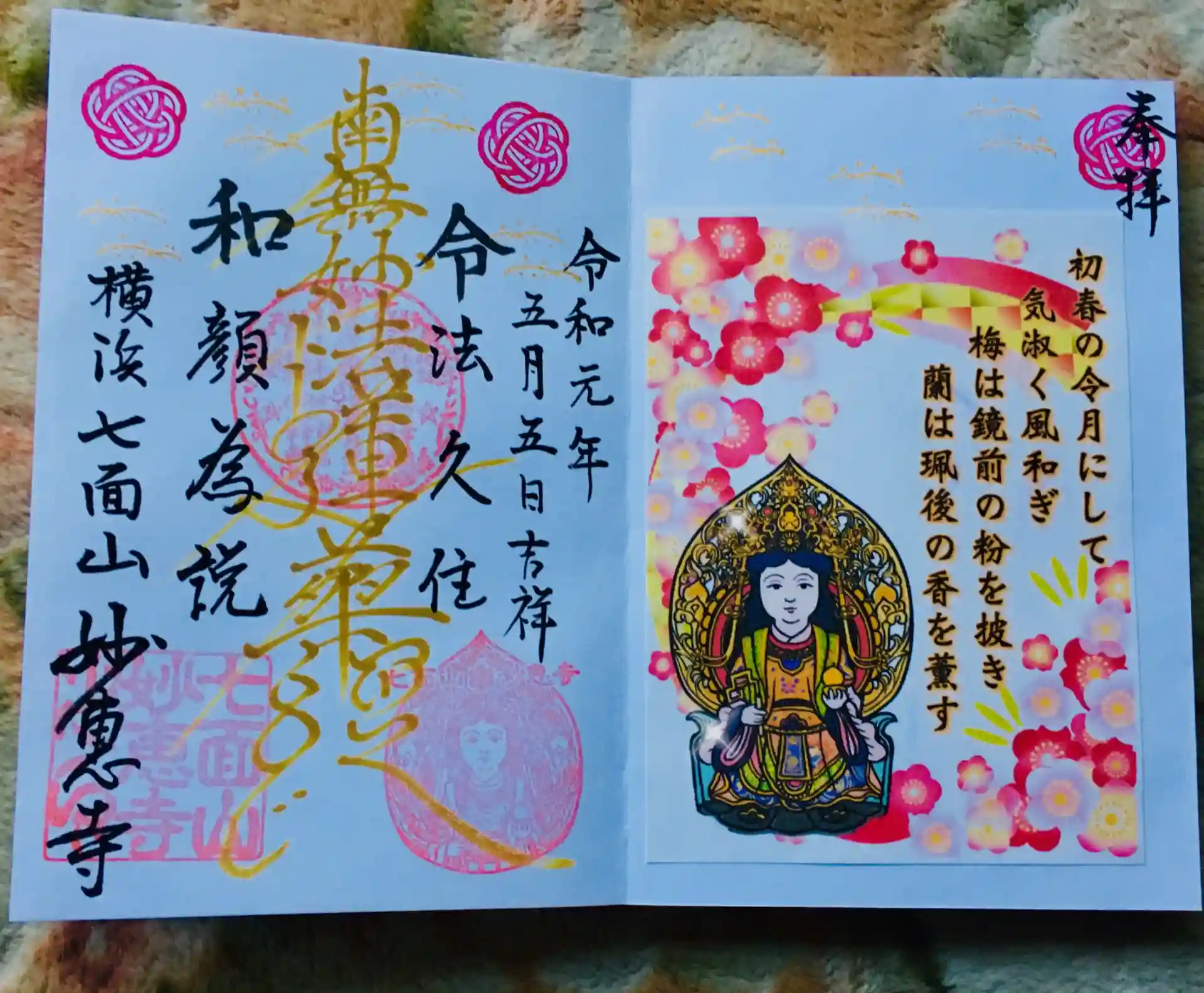 前回お伺いした時はピンクの春らしい御朱題でした^_^