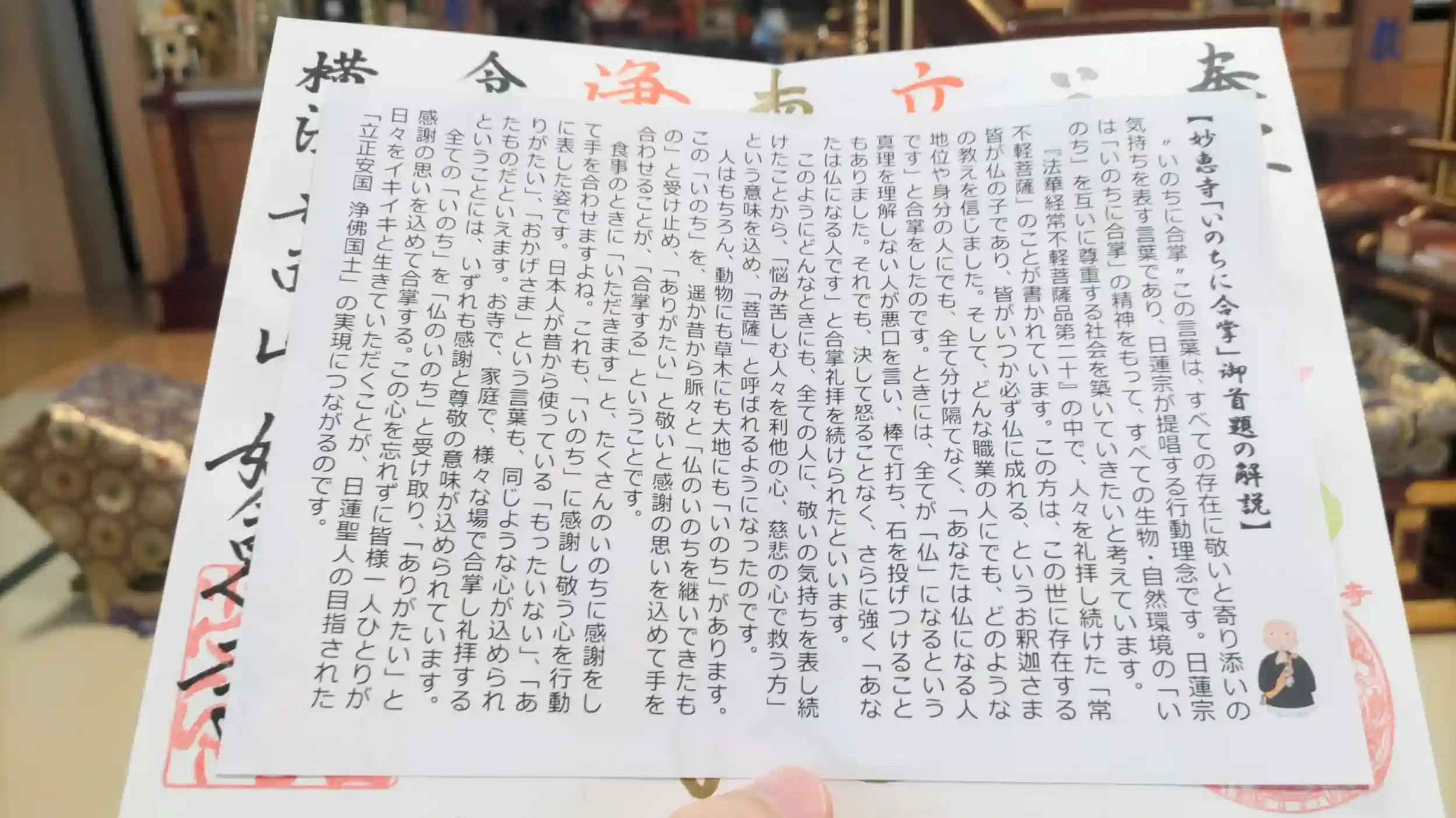 インスタのメッセージで予約を取る必要があります。見開きの御首題として、SDGsシリーズといのちに合掌の御首題があるようです。