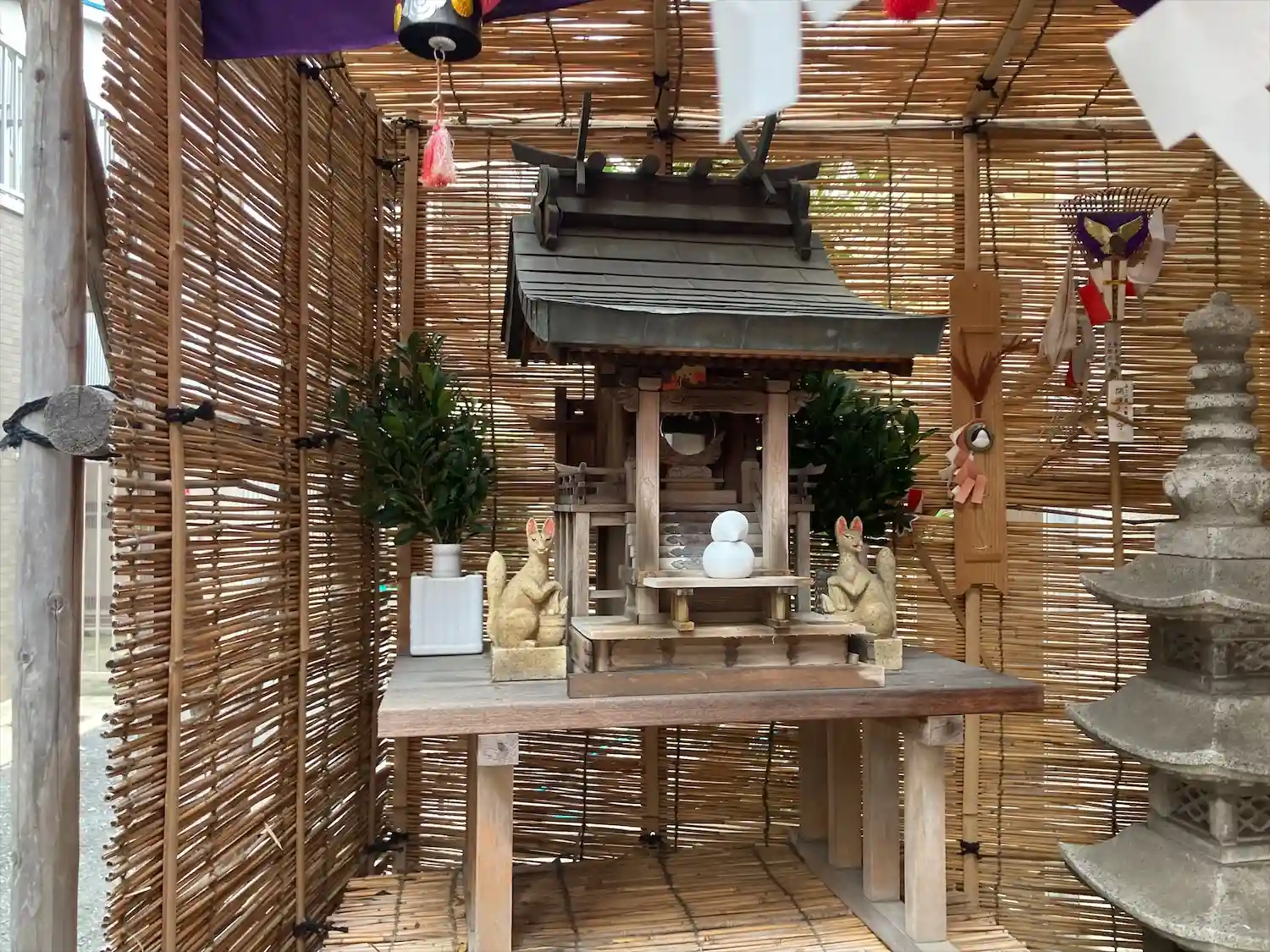 伏見稲荷大社の摂社で境内の稲荷山に鎮座している熊鷹社からの勧請と思われます。商売繁盛のご利益があることから、横浜橋商店街に関係あるかも知れません。
