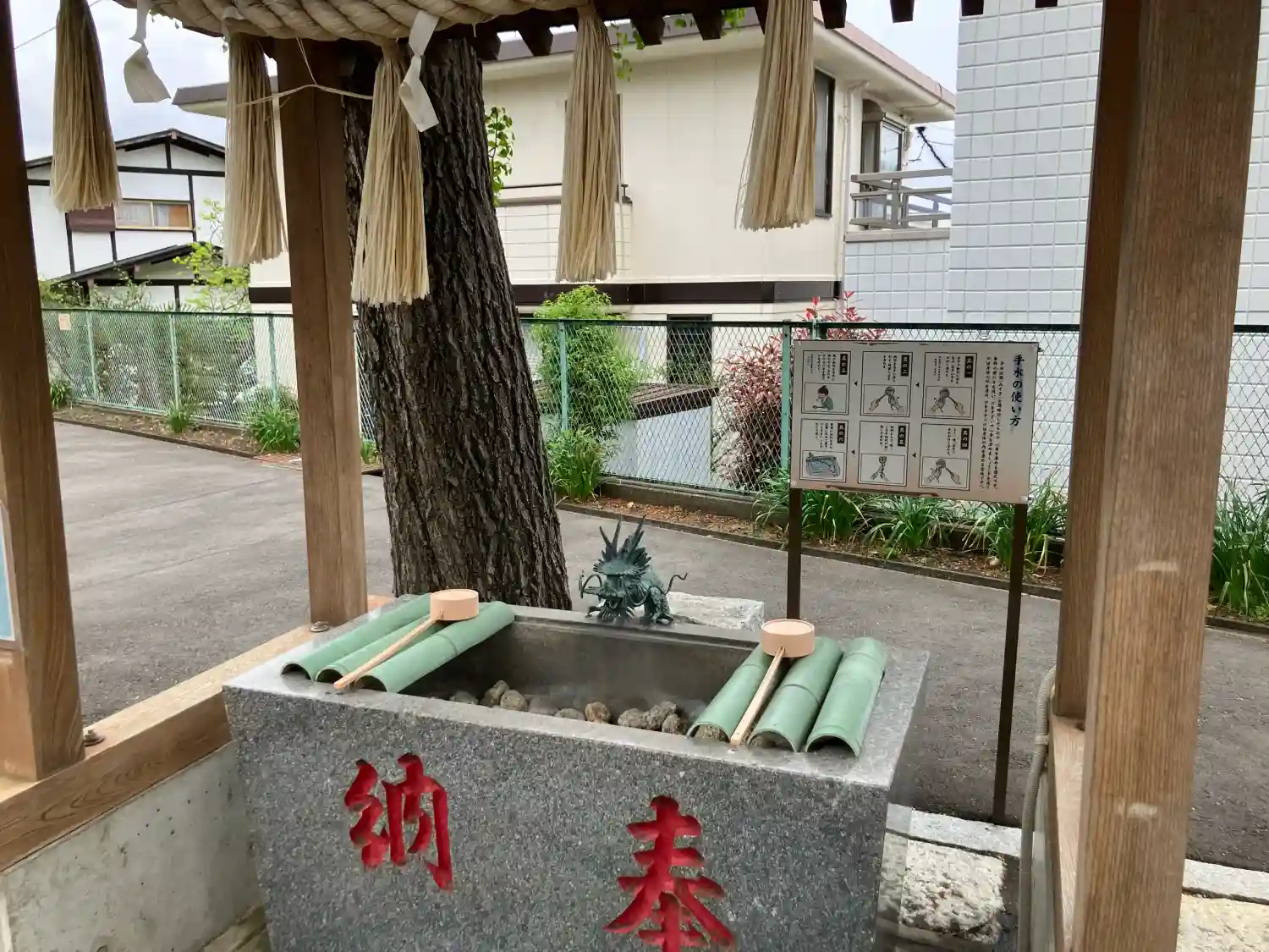 人が近づくと自動で水が出るようになってる、ハイテク手水屋でした