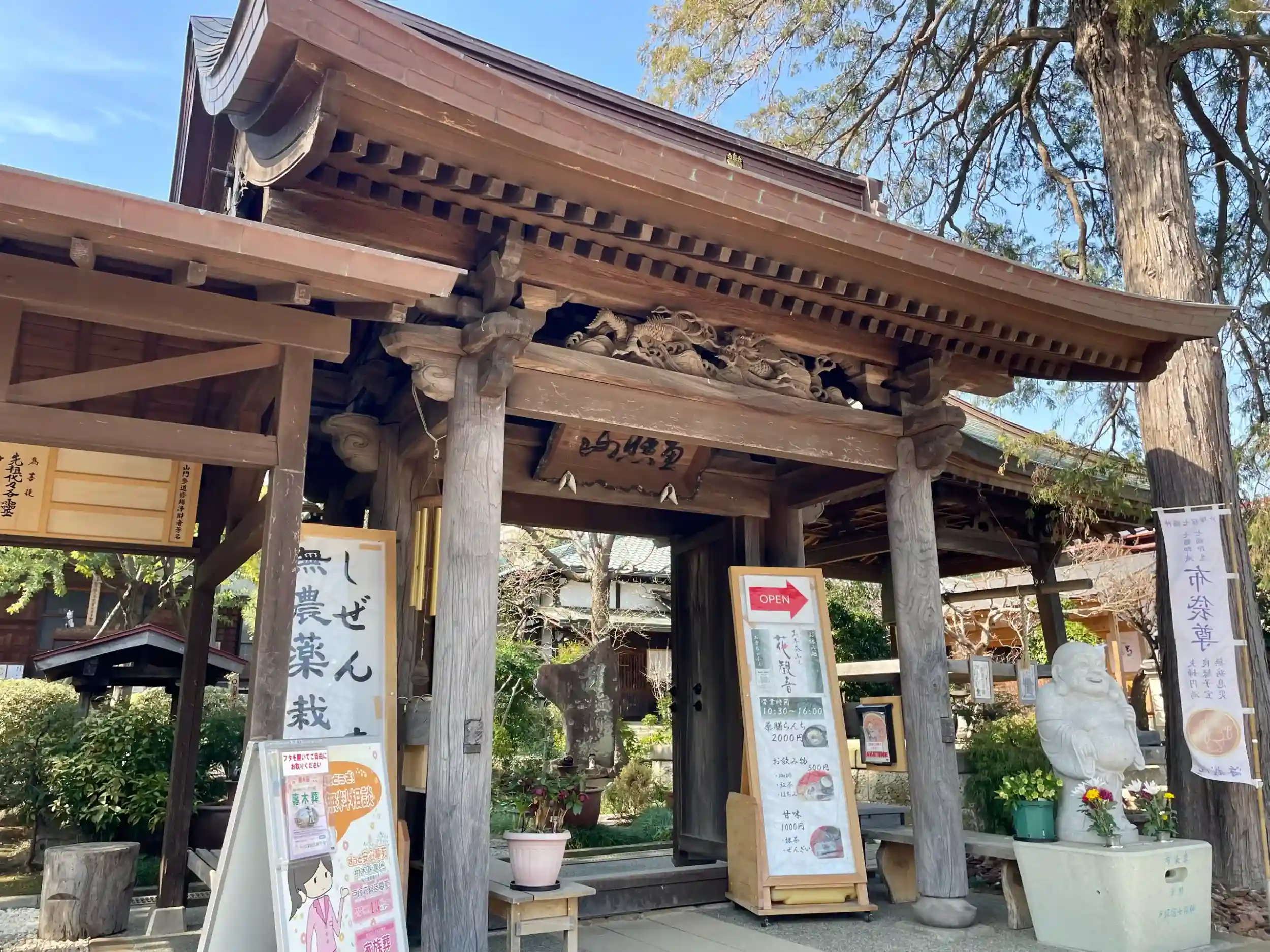 現在、堂内には飲食店「お寺茶ふぇ 花観音」がある。
