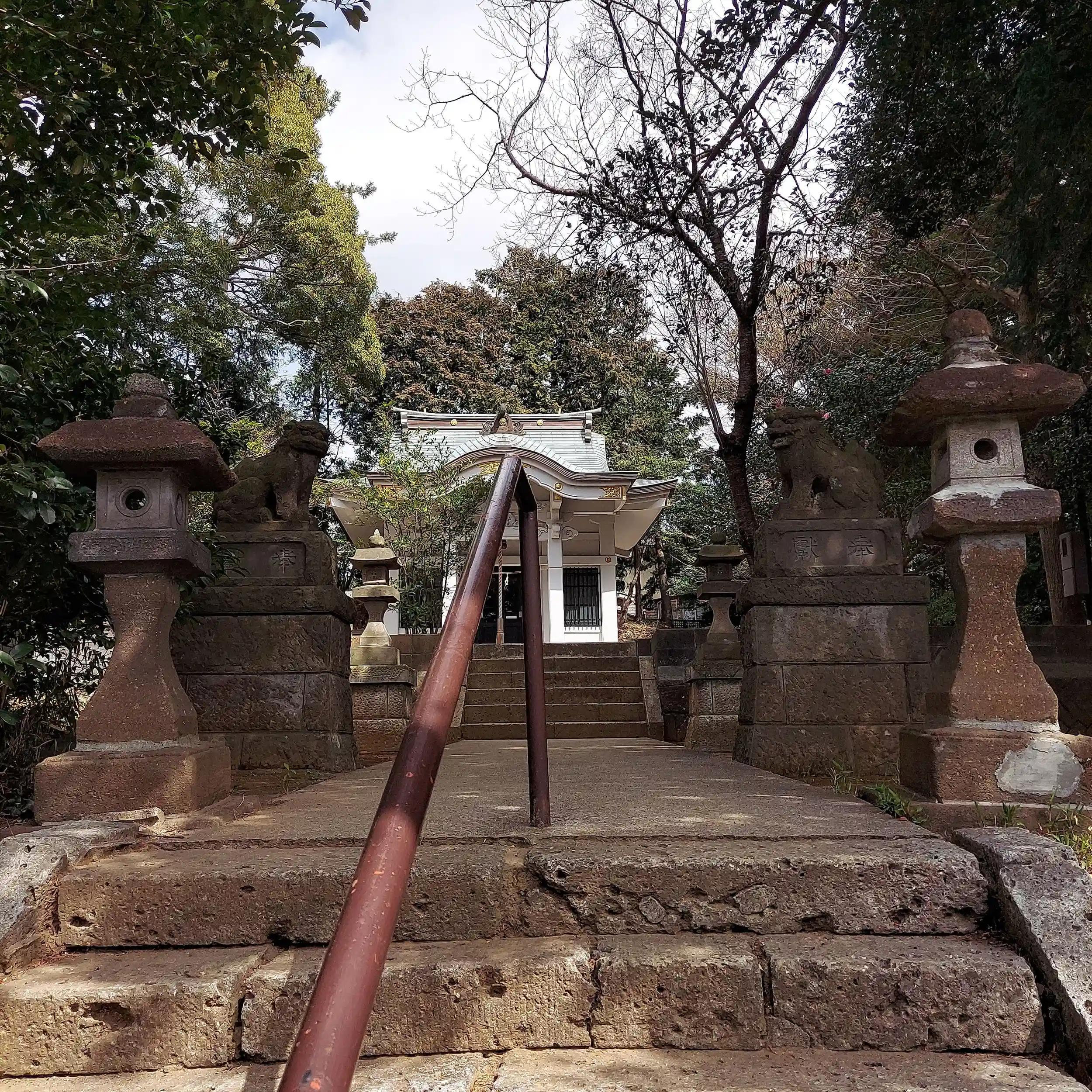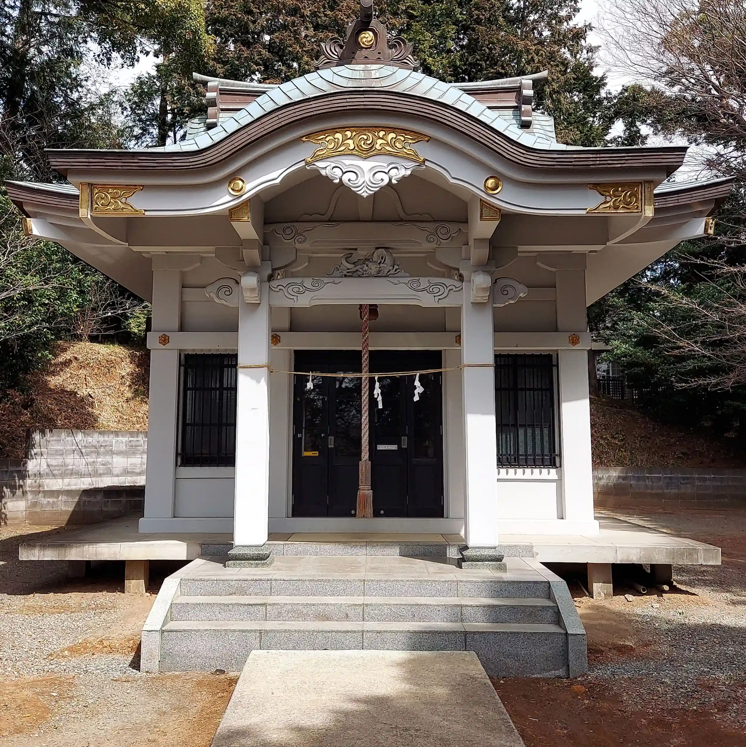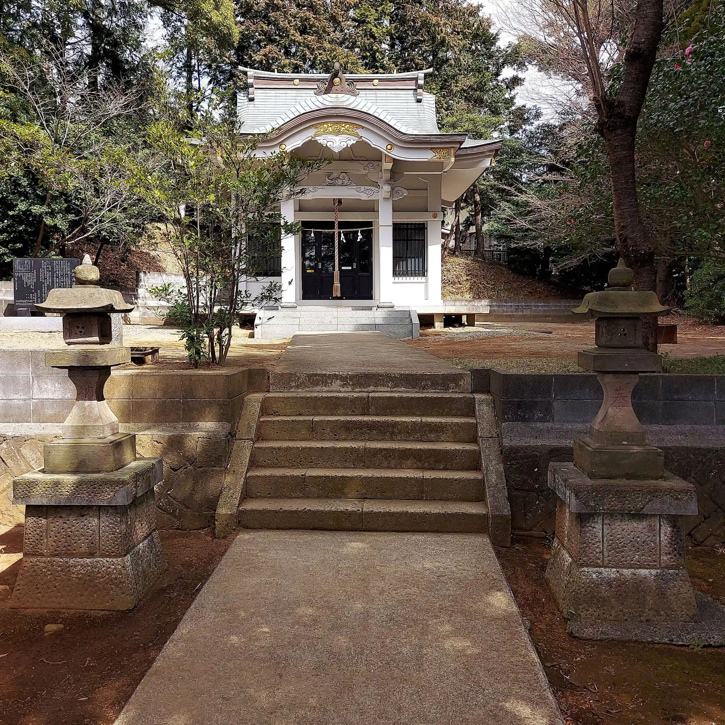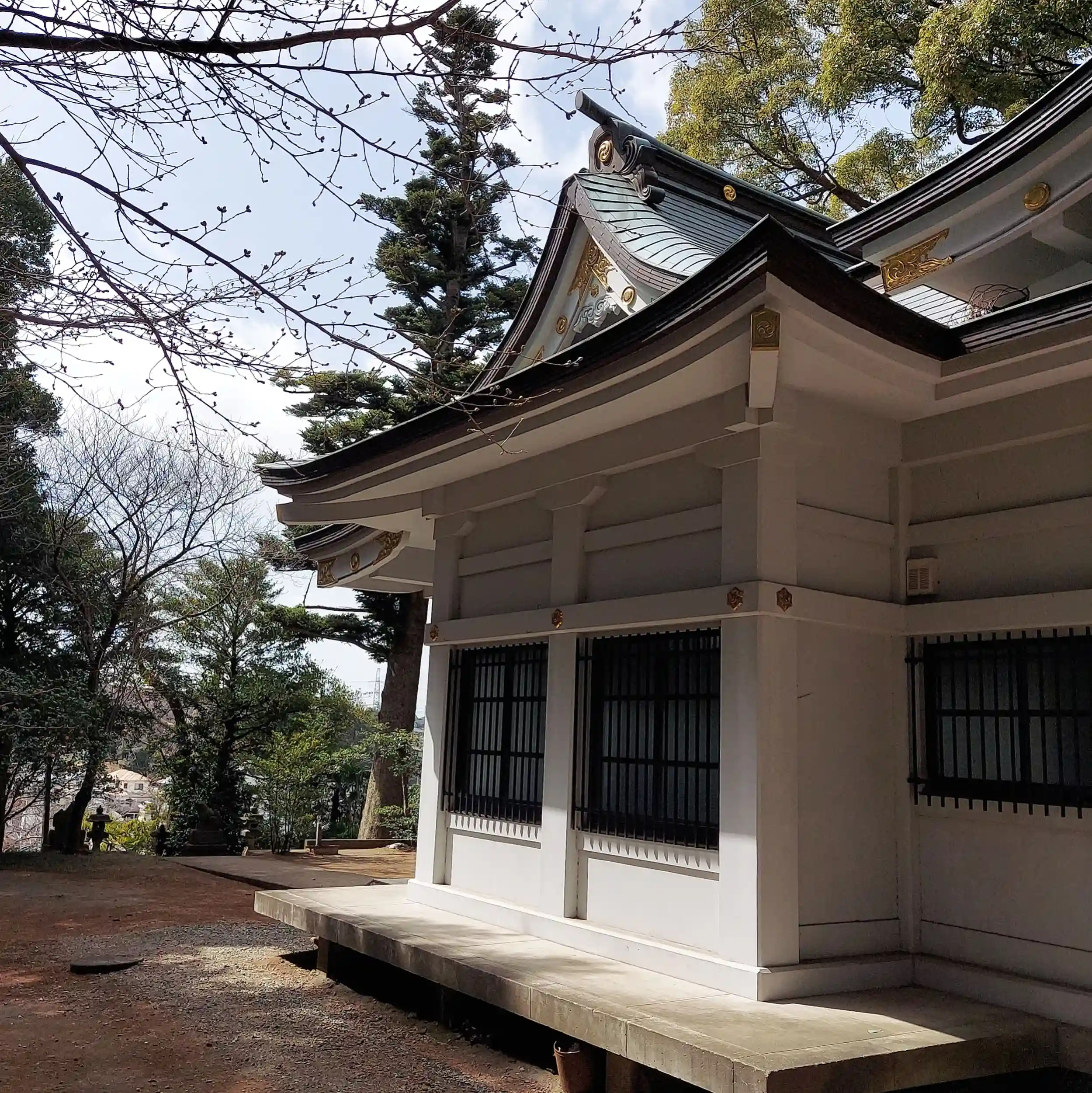階段を登って行くと白塗りの社殿が堂々と鎮座していました。