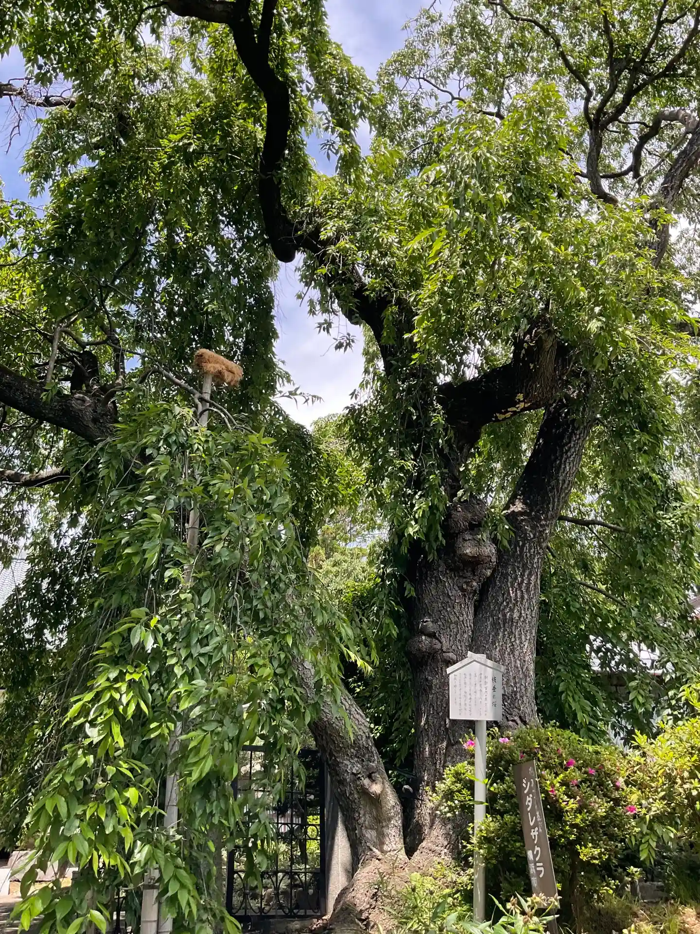 この寺のシンボルであるしだれ桜です。残っていたことが幸いです。また春になると変わらずに咲くでしょう。