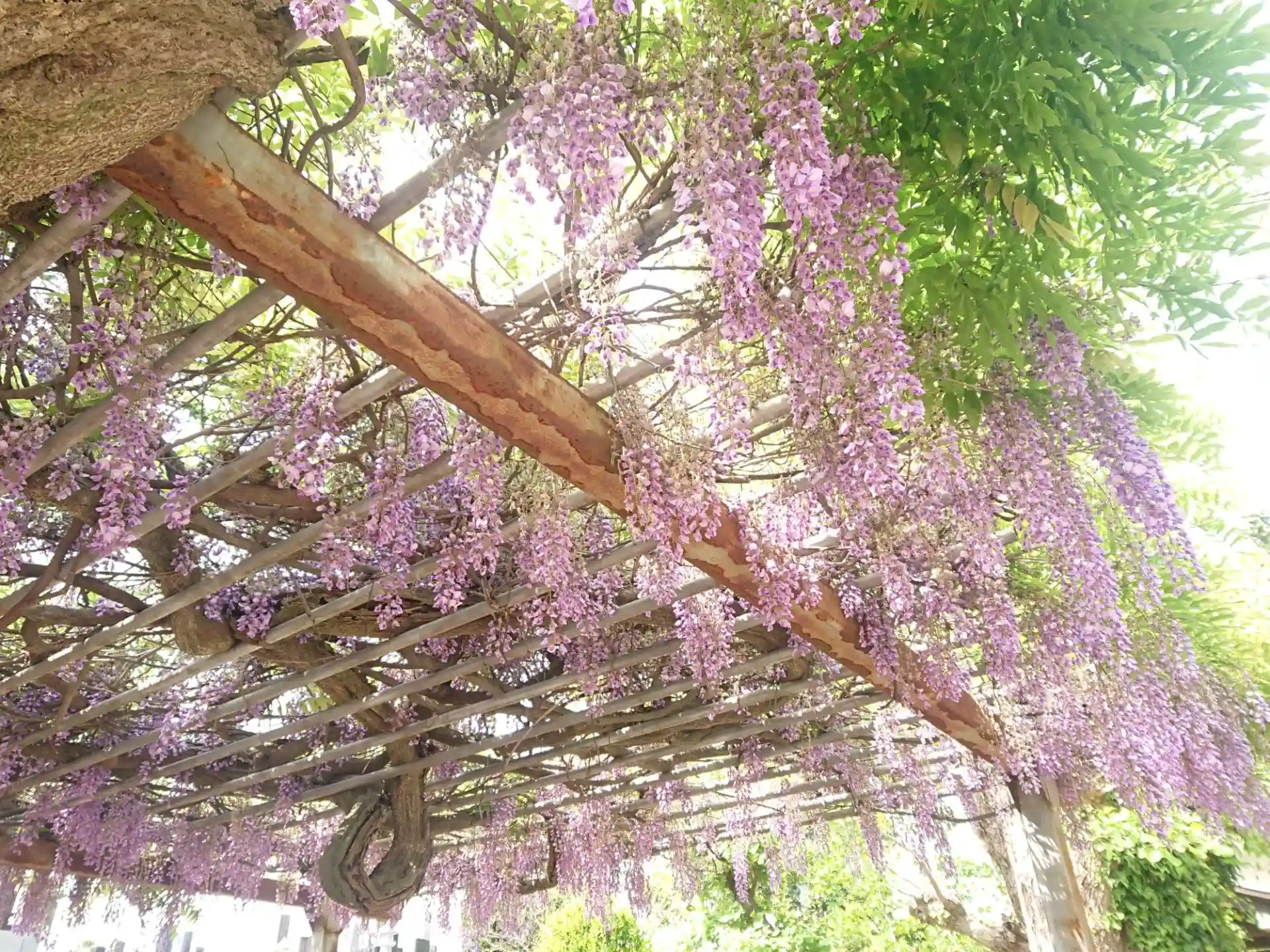とても広い境内に大きな本堂があります。藤が綺麗に咲いていました。