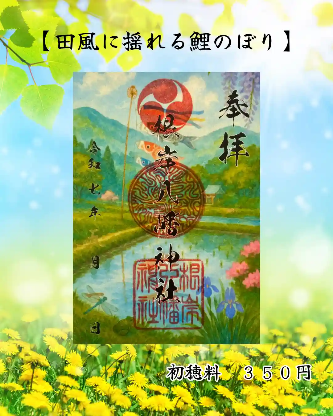 ・5月限定の御朱印    【田風に揺れる鯉のぼり】
