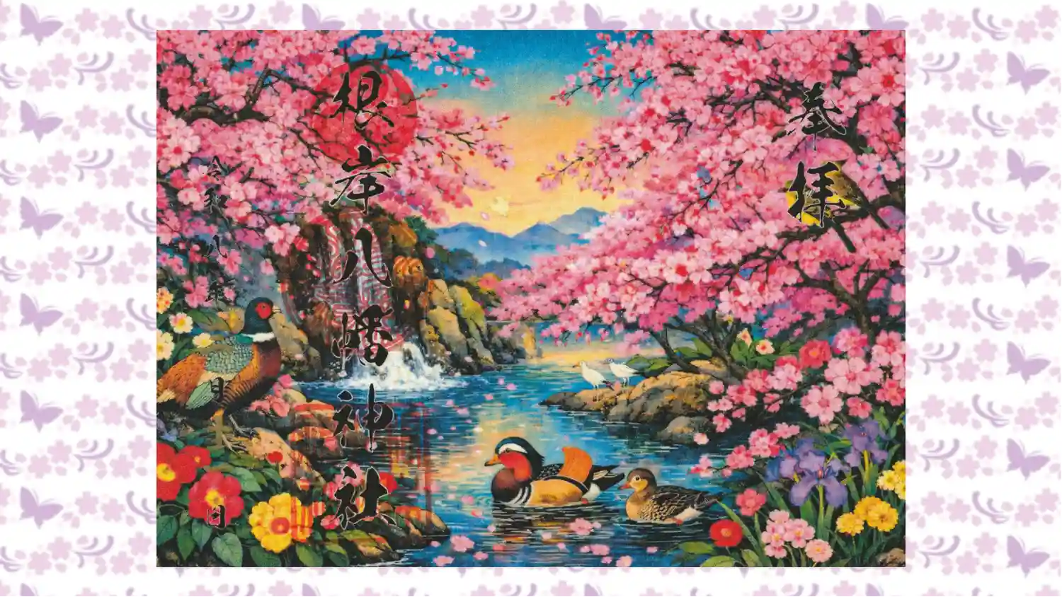 ・3月限定の見開き御朱印【花渓鴛騫図】