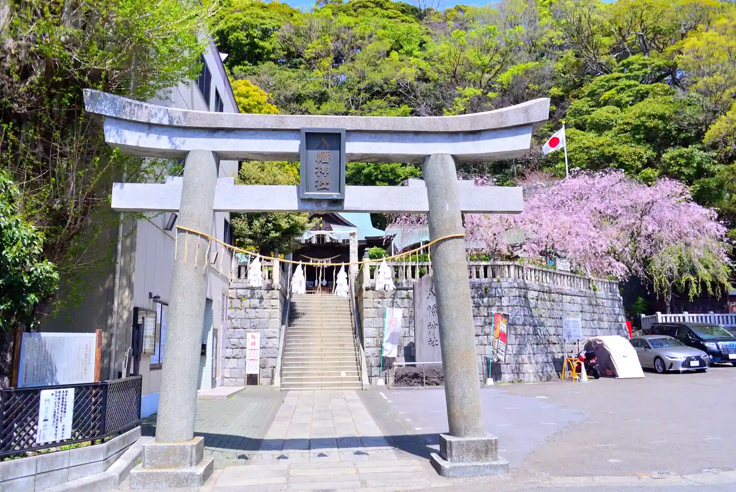 根岸駅より歩き、根岸八幡神社に参拝。神社の裏手の社叢林は「かながわの美林五十選」とのこと。桜🌸も綺…