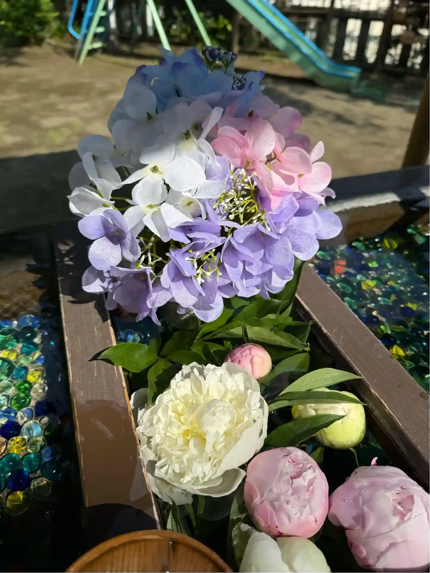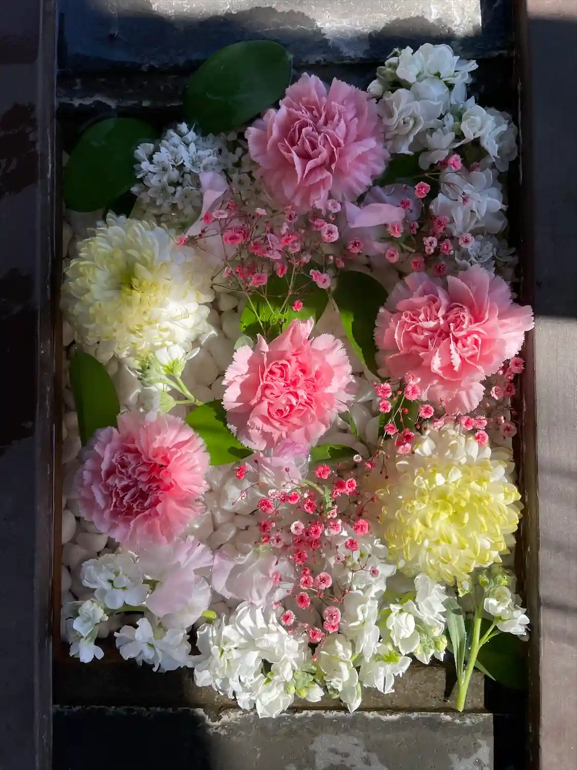 本日、根岸八幡神社附属根岸幼稚園の入園式だったので、少し早いですが花手水が新しくなりました🌺✿.•…